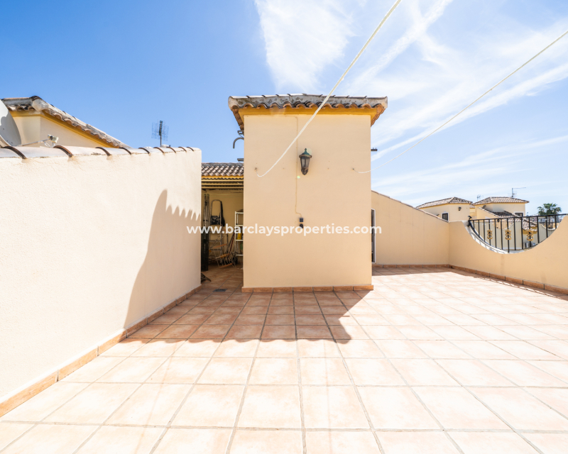 Located in a friendly community this well-presented quad villa, a model known as (Isla Cristina) is located in Urb. El Oasis just a 5-minute walk to the nearby amenities of Urbanisation La Marina, a 5-minute drive to the beach, and only 25 minutes from Alicante Airport. This beautifully presented quad ➡️ allows residents access to the Community Swimming Pool which is not far from the property in the heart of the community which is securely locked by an entry code system for your family's security and safety. This fabulous villa has a 93m2 build and 81m2 living space.