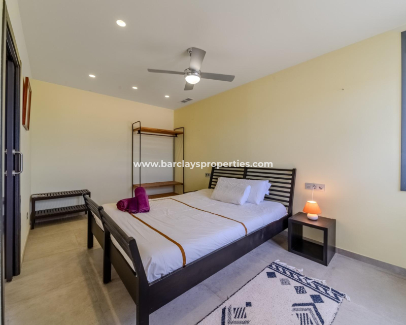This extraordinary 5-bedroom, 5-bathroom villa in La Marina del Pinet (Elche) blends luxurious living with modern functionality ➡️ across three floors and 424 m² of built area, set on an expansive 10,602 m² plot. Constructed in 2016 and enjoying full southern exposure, the home offers stunning 360° countryside and mountain views, just 5 km from the beach and 25 km from Alicante Airport. The spacious open-plan design, enhanced by premium materials, ➡️ a private lift, under-build, and advanced accessibility features, ensures both comfort and elegance. Highlights include a designer kitchen with a central island and high-end appliances, a living area that opens to a vast terrace and summer kitchen with barbecue, and ➡️ a wellness area complete with a 12 x 6 m pool, elevated jacuzzi, and solar-powered outdoor shower.