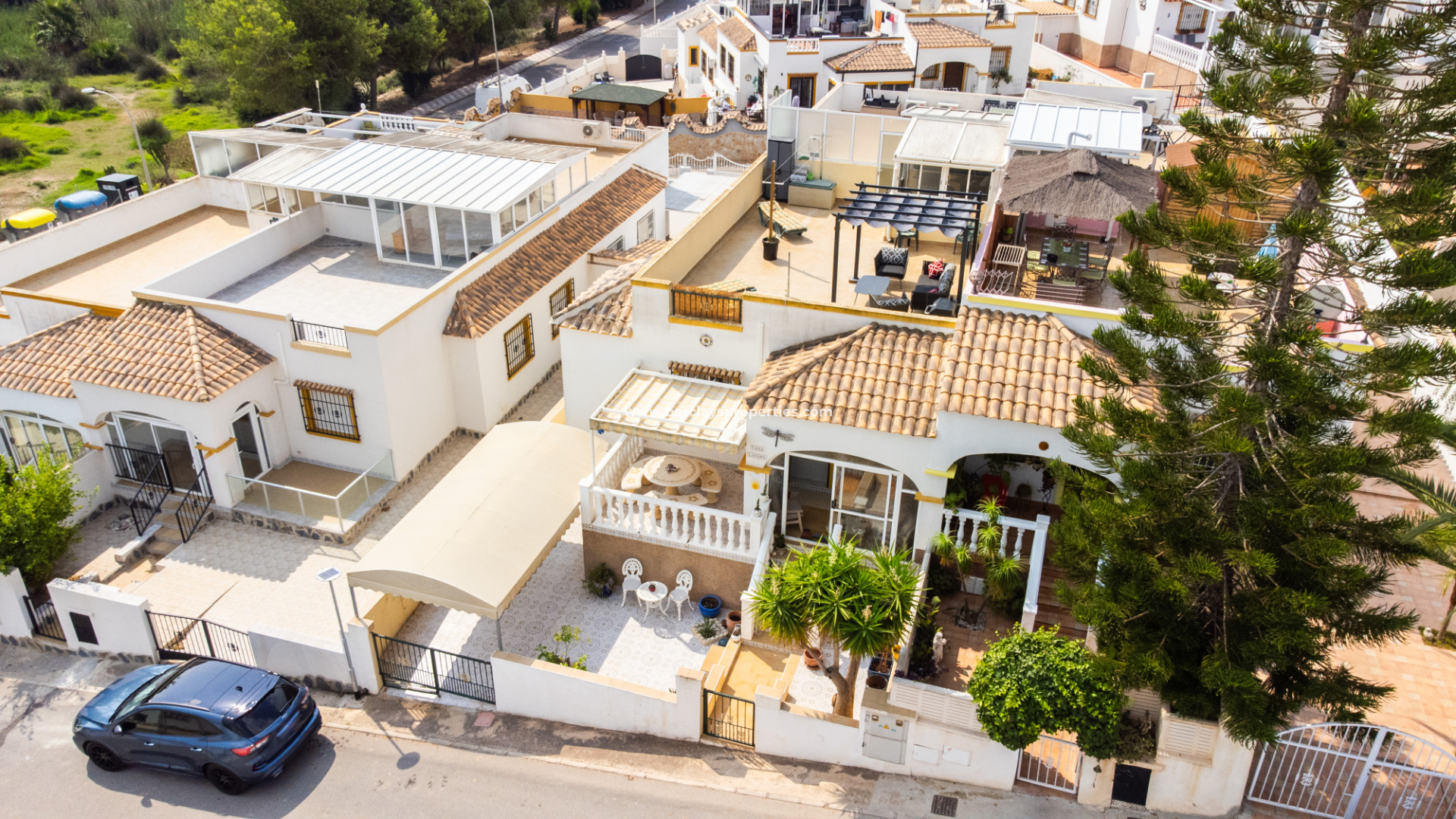 We present to you one of the most popular models on urbanisation La Marina, the “Julia” model quad which is set in a quiet area within walking distance to shops and local amenities, just a five-minute drive to the beaches of La Marina, twenty-five minutes from Alicante Airport, and fifteen minutes to the nearest golf course. Residents also have ✅access to two community swimming pools and gardens with plenty of shaded areas to relax and unwind. This property has the added bonus of overlooking a protected green area, which offers a beautiful view as well as the opportunity for relaxing walks, as well as has parks for children.