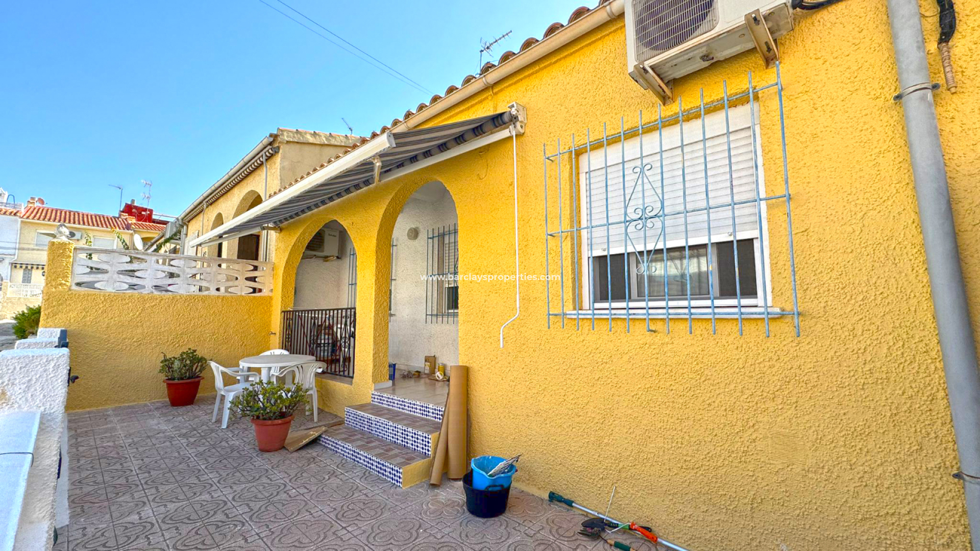 Townhouse for sale in Costa Blanca offering 2 bedrooms, 1 bathroom and a bright open-plan kitchen on one level with 40 m² of living space set on a 27 m² plot. Located just 3 km from the beach and 25 km from Alicante airport, this fully furnished property comes with white goods included, double glazed windows, ceiling fan, and air conditioning. Set in a quiet area yet only 700 m from amenities, it presents excellent rental potential.
