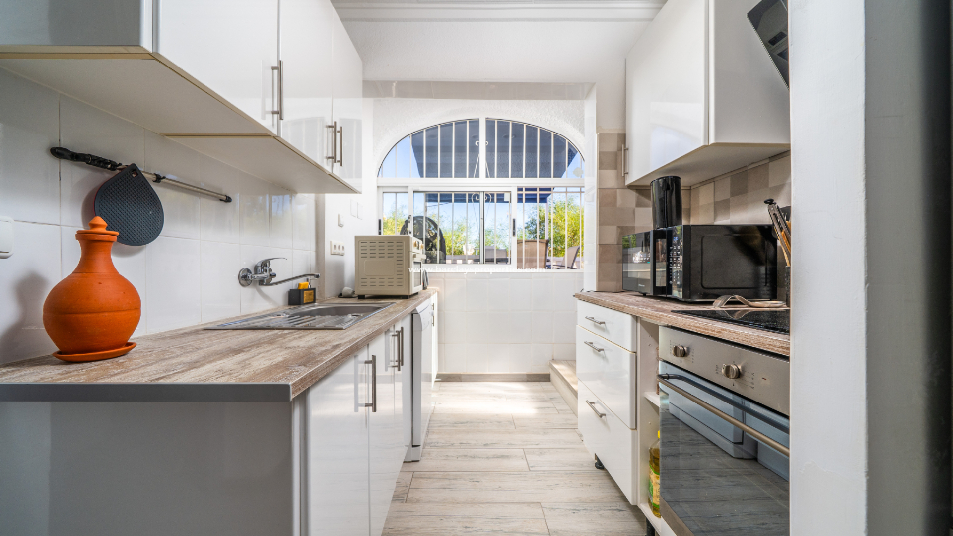 Live sustainably in style in this renovated detached villa, situated in a quiet cul-de-sac in the popular La Marina urbanisation, San Fulgencio. This villa is within walking distance to amenities and the weekly Thursday market where one can enjoy fresh produce and local delicacies or sit in one of the cafés with a refreshment watching the world go by. This home, an extended Rosa model, has been meticulously updated and features 2 bedrooms and 1 bathroom.