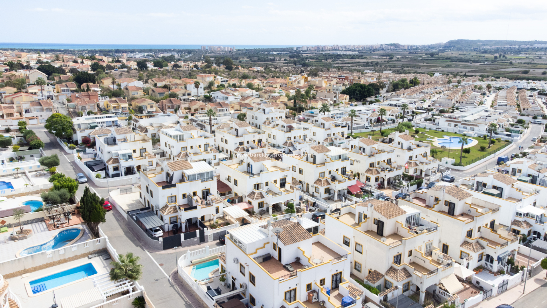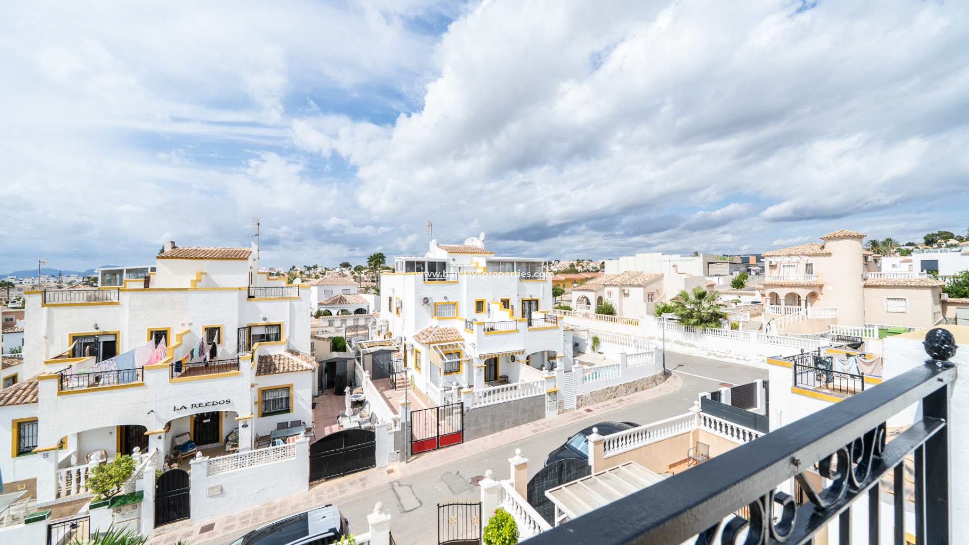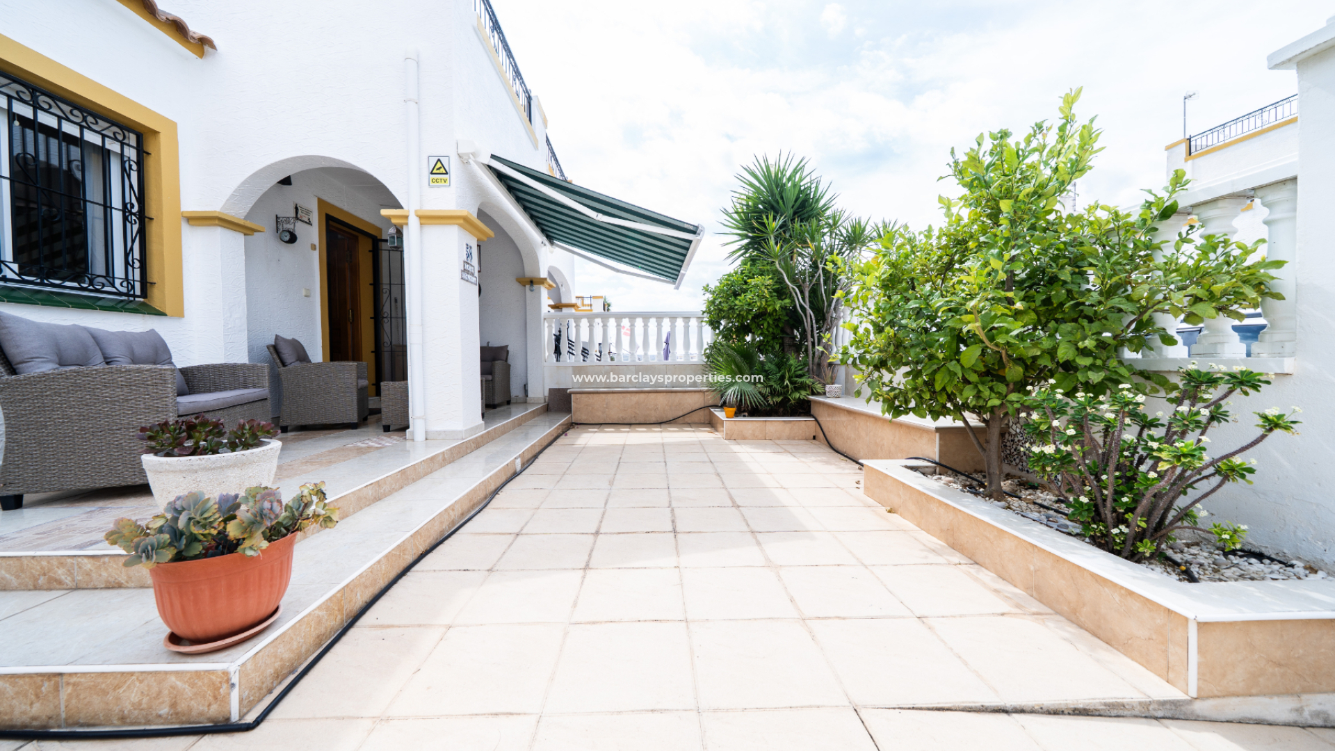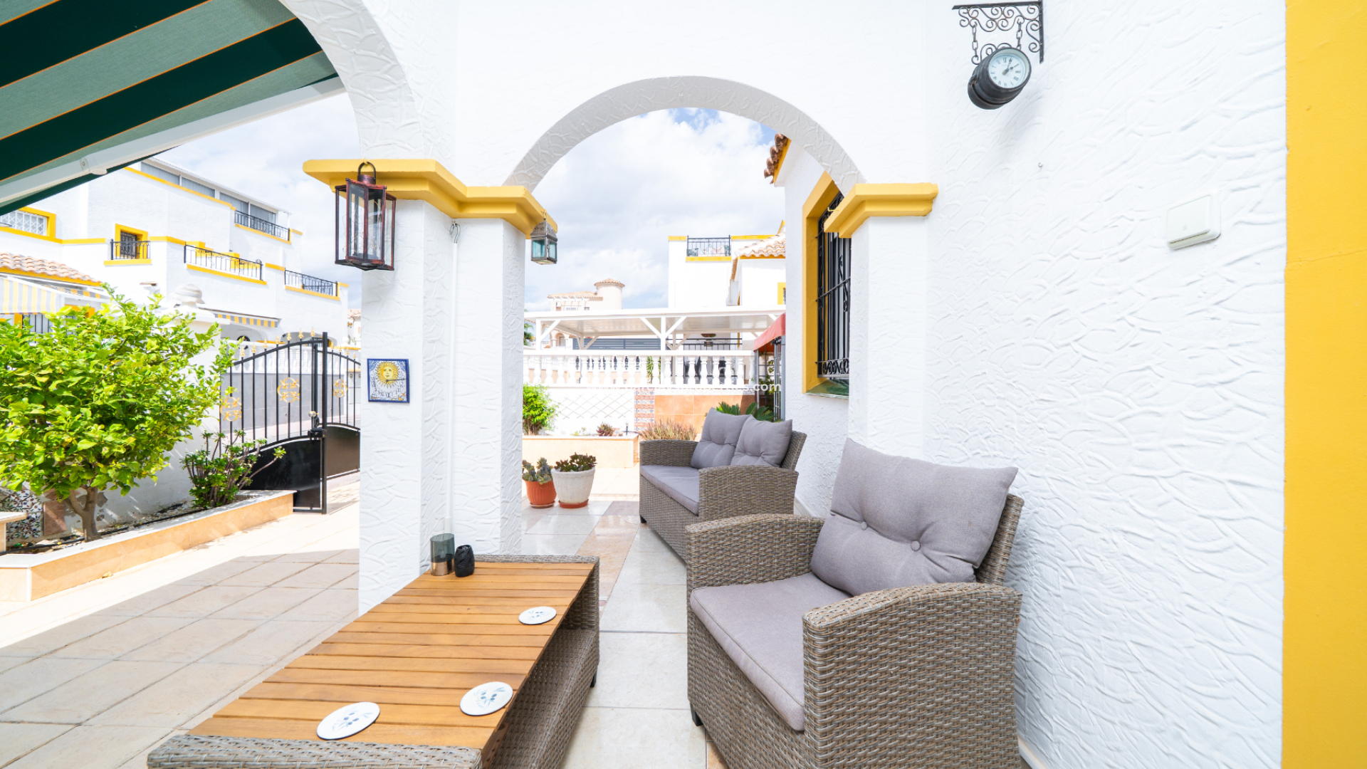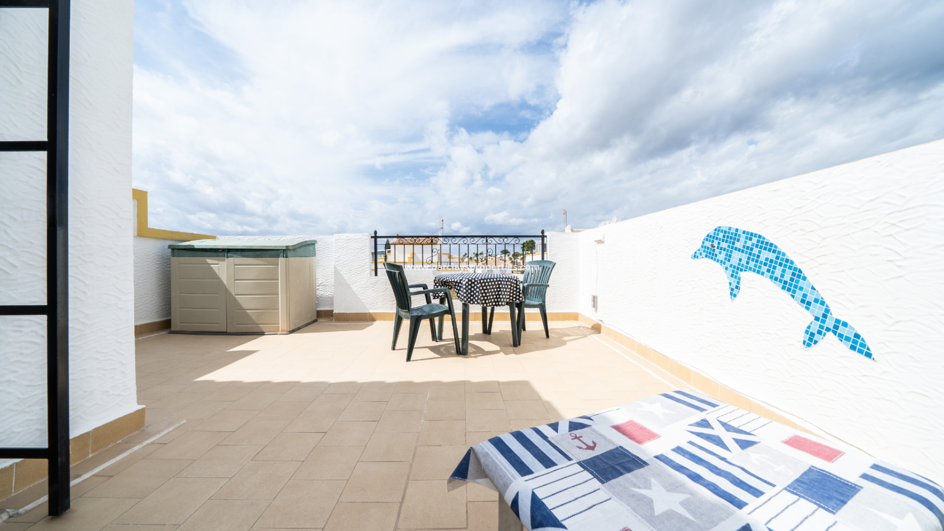 This fully furnished quad in La Marina offers 3 bedrooms and 2 bathrooms across 83 m² of living space on a 72 m² plot. Featuring a renovated kitchen, air conditioning, double-glazed windows, ceiling fans, and white goods included, the property also offers a rooftop sun solarium, barbecue area, and access to a community pool. Located just 3 km from the beach, 25 km from the airport, 10 km from nearby golf courses, and only 150 meters from local amenities, it provides beautiful views and a quiet setting while offering excellent rental potential.