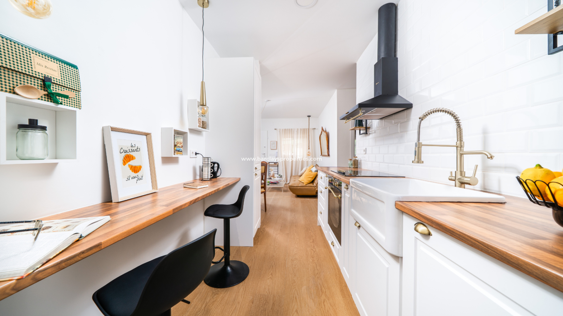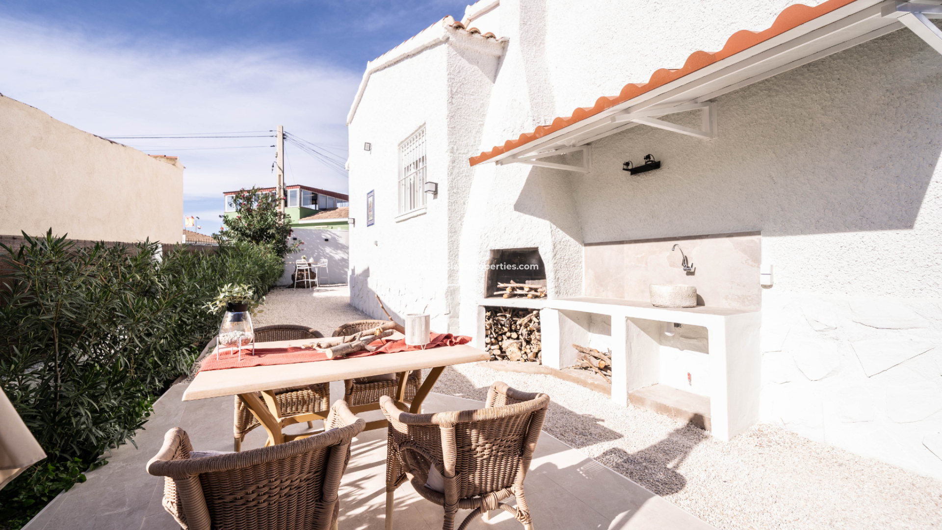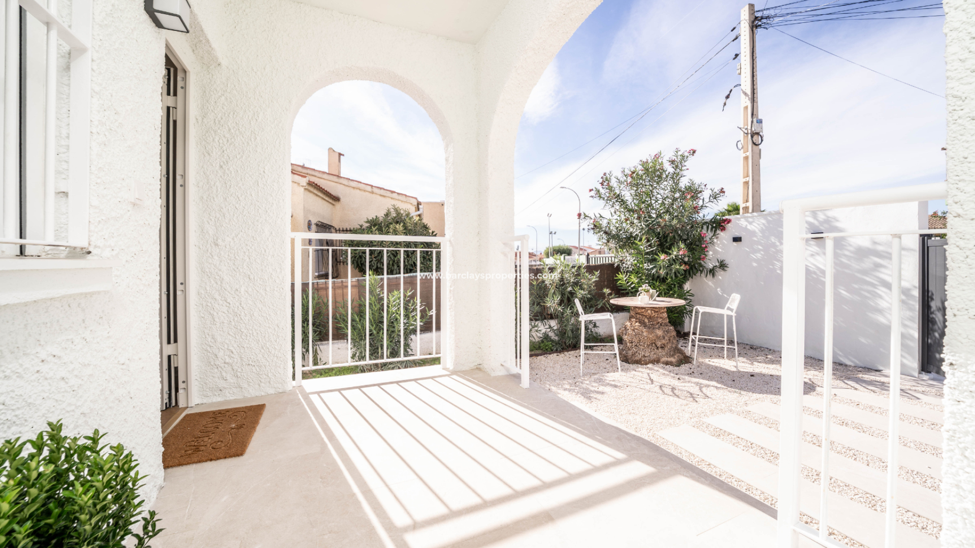 This charming, completely refurbished detached villa on a single level in Urb La Marina, San Fulgencio, is a perfect blend of modern comfort and Spanish coastal living. Featuring ➡️ 2 bedrooms and 1 bathroom within a cosy 63 m² build on a generous 253 m² plot, it comes fully furnished with white goods included and boasts air conditioning for year-round enjoyment. The stylish interior showcases a bright, open-plan living and dining area with attractive wood flooring, a modern independent kitchen featuring white subway tiles, a black range hood, and gold-tone accents, and a dedicated utility room. Outside, you'll find a welcoming front terrace, a graveled garden with a sun-awning and a ➡️ pleasant outdoor dining/barbecue area, a convenient cover parking area with an electric gate, and excellent security thanks to a reinforced security door and double-glazed windows. Located just a 2 minute walk to the neighbouring and very popular "Sports Complex" with outdoor pool, trampolines and crazy golf as well as 3 km from the beach, ➡️ 500 metres from amenities, and offering great rental potential, this quiet area yet close-to-everything property is a superb investment opportunity.