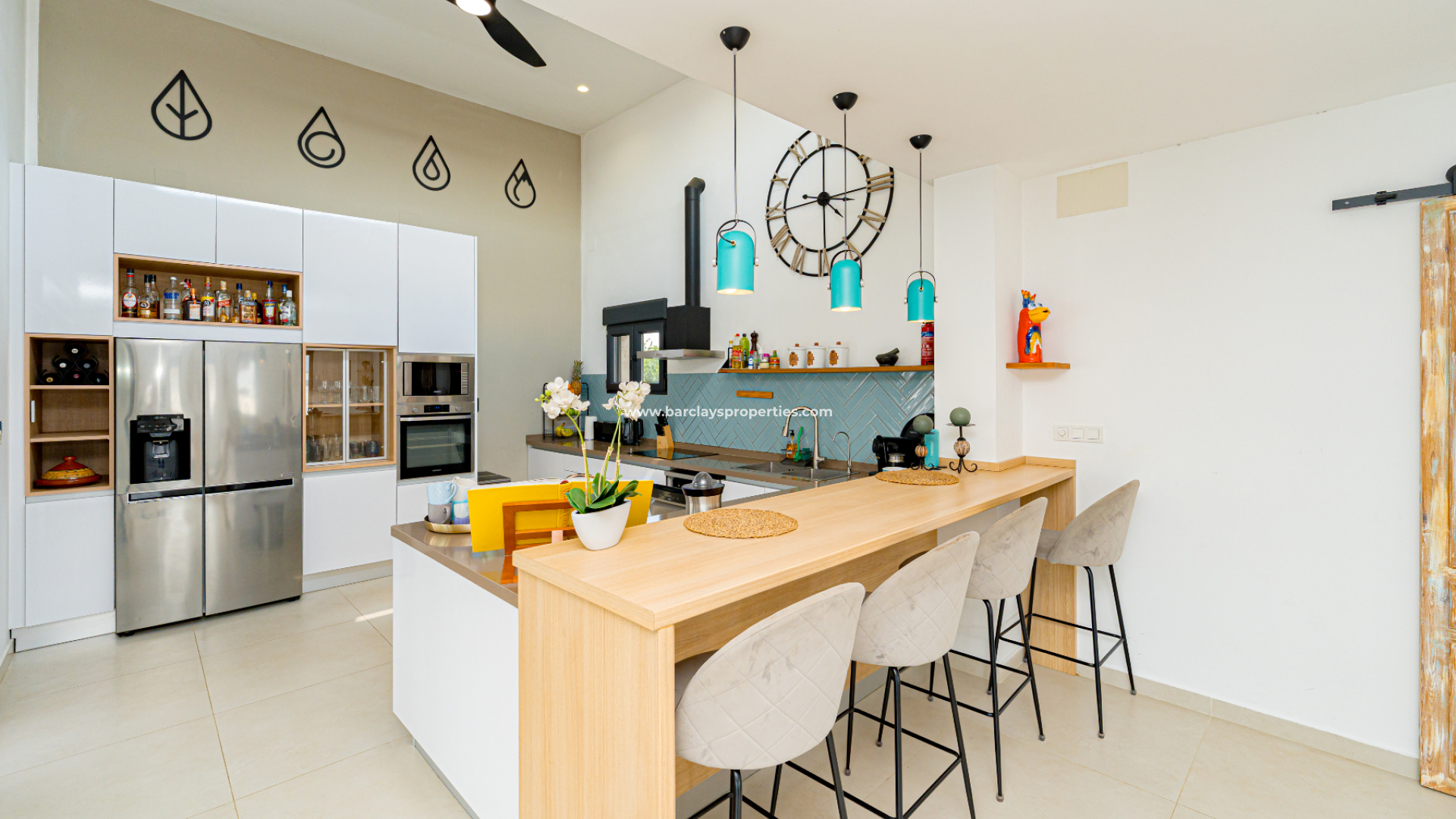 Beautifully presented, this villa comprises ➡️ five spacious bedrooms and five stylish bathrooms, some of which are en-suites offering comfort and privacy for family and guests. The open-plan layout includes a large living area, dining space, and a modern fully equipped kitchen with a breakfast bar, creating a bright and sociable environment. Natural light fills the home through numerous windows and large sliding patio doors, which open directly onto the stunning pool area.