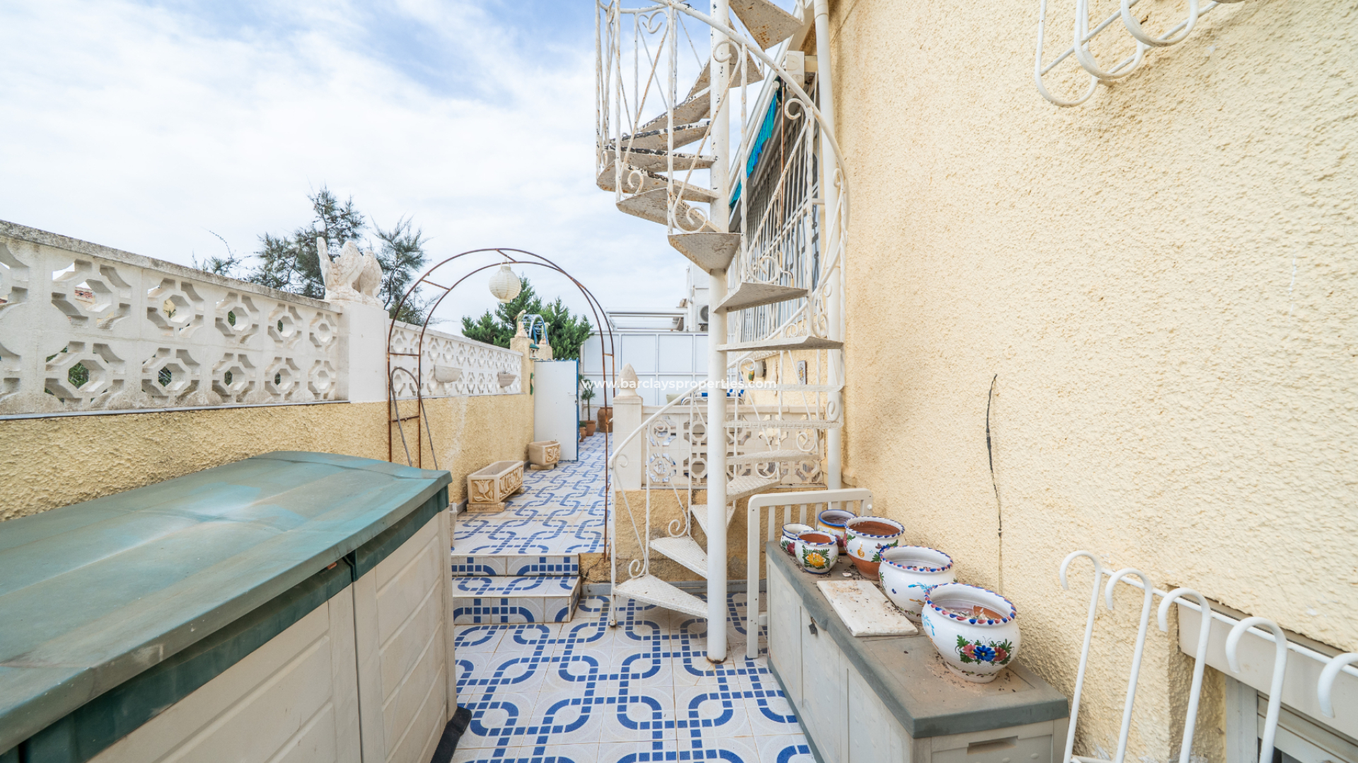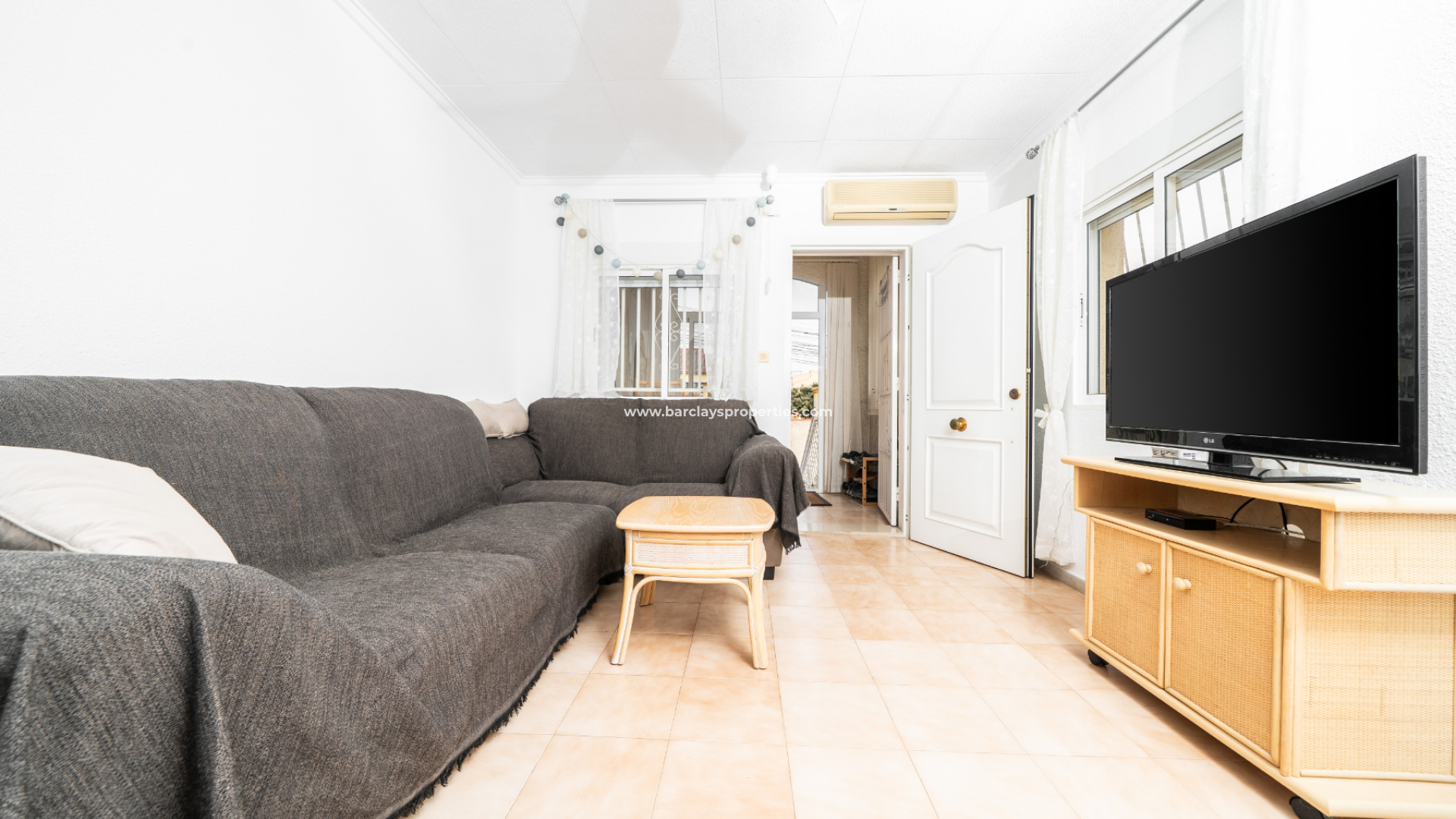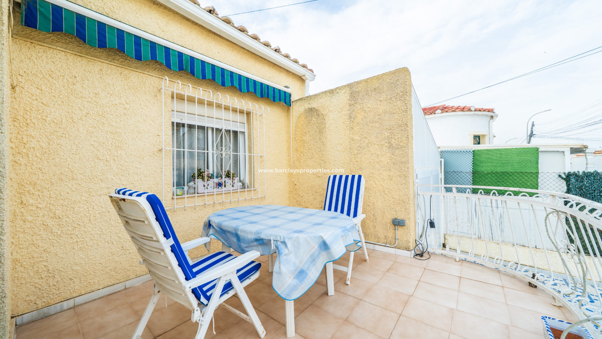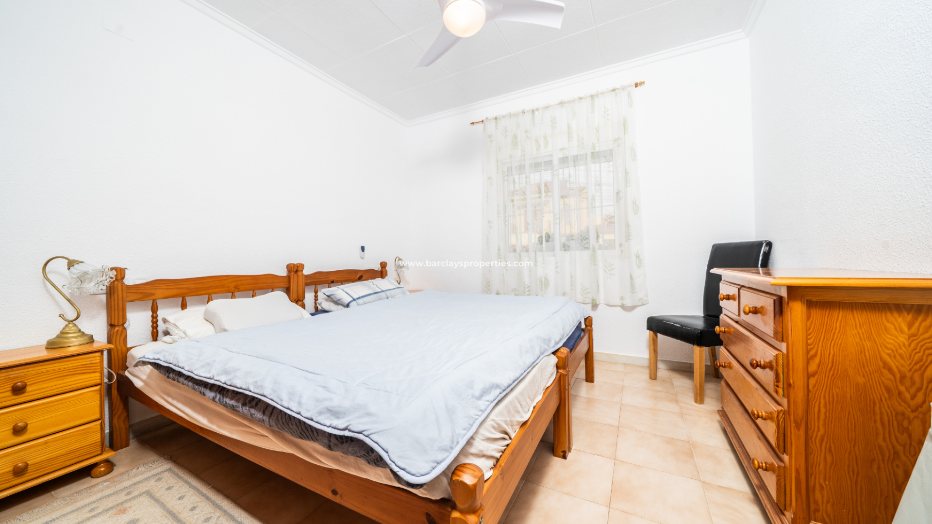 This charming detached villa, located in a quiet community on the Costa Blanca, offers ➡️ 130m² of built space across on a 228m²plot. It features two comfortable bedrooms and two bathrooms, along with an independent kitchen that includes white goods. The property is designed for Mediterranean living with a barbecue area, air conditioning, double-glazed windows, and a fantastic roof-top solarium for sun worshipers. A standout feature is ➡️ the large, versatile under-build, which offers significant potential to be used as a home office, extra storage, or even an additional sleeping quarter. The private plot offers parking for one car, a storage room, and ➡️ direct access from the garden to a peaceful communal green area at the rear, perfect for relaxation. Being part-furnished and in a desirable location—just 800 meters from amenities, 3km from the beach, 25km from the airport, and 10km from a golf course—it represents a great rental potential.