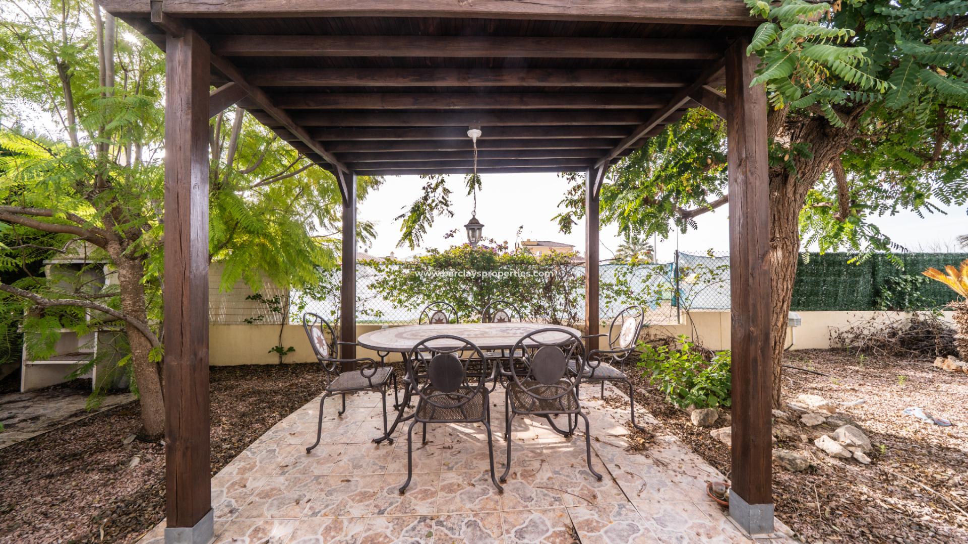 The exterior has been designed for easy outdoor living, featured in the ➡️ spacious 503m2 plot is a lovely private swimming pool with exterior shower, a covered seating area with a wooden pergola, a built-in BBQ, and a wooden storage shed. The plot is easy to maintain while still providing excellent entertaining space for family and friends.