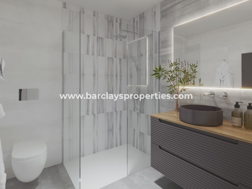 The apartments are two bedroom two bathrooms and unlike other developments are fully equipped. A-C units ( Split system) are included, aswell as exterior and interior lighting, double glazing and electric blinds, whitegoods in the kitchne are also included , Underfloor heating in the bathrooms...
