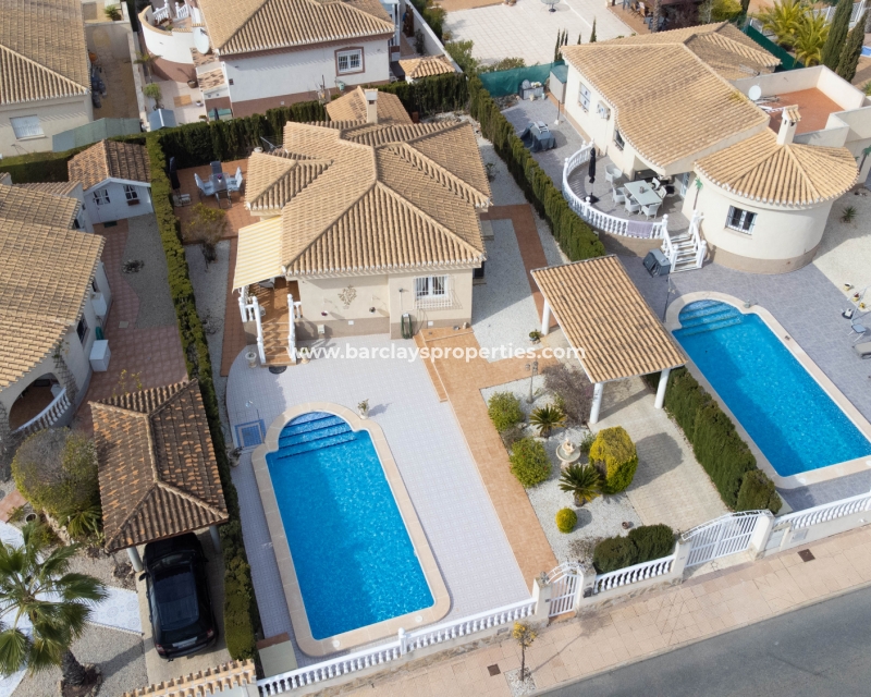 You will fall in love with this majestic Detached Villa for sale in Costa Blanca with private pool! Situated on a large plot of 500m2 it offers an ideal Spanish lifestyle with a large 8x4m2 private swimming pool and beautiful garden. You will spend most of the year outside enjoying the glorious sunny weather and thanks to the covered gazebo area you can also enjoy shaded seating, which along with the BBQ, offers the perfect place for social gatherings and dining al fresco.
