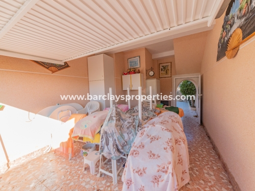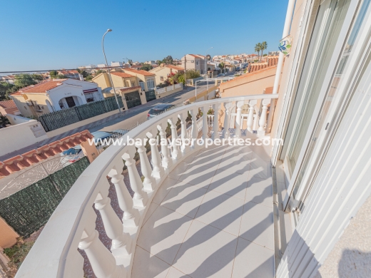 A fantastic opportunity has arisen to acquire this extended Villa for sale in La Marina. This lovely detached property is situated in a quiet yet central location of the urbanisation, only a short walk to the popular “Consum Square” commercial area. This immaculate villa with exterior gote gran finish offers in it's fully paved garden of 237m2 off road parking and a private garage with an access door to the rear garden which is fully tiled offering various fruit trees.