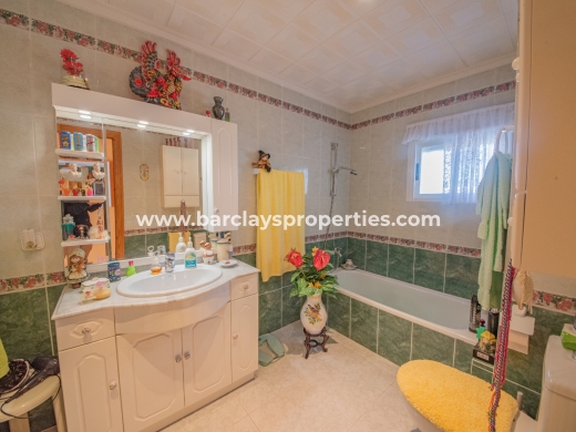The front sun terrace is west facing with an exterior seating area with sun awning leading to the covered porch and access to the interior of the property which is on two storeys where we find the bright and spacious living room with air conditioning, an independent fully equipped extended kitchen, two bathrooms, three good sized bedrooms (one being the master with access to a balcony with spectacular views of the mountains and countryside). The property has a large roof top solarium ideal for those warm summer days and nights.