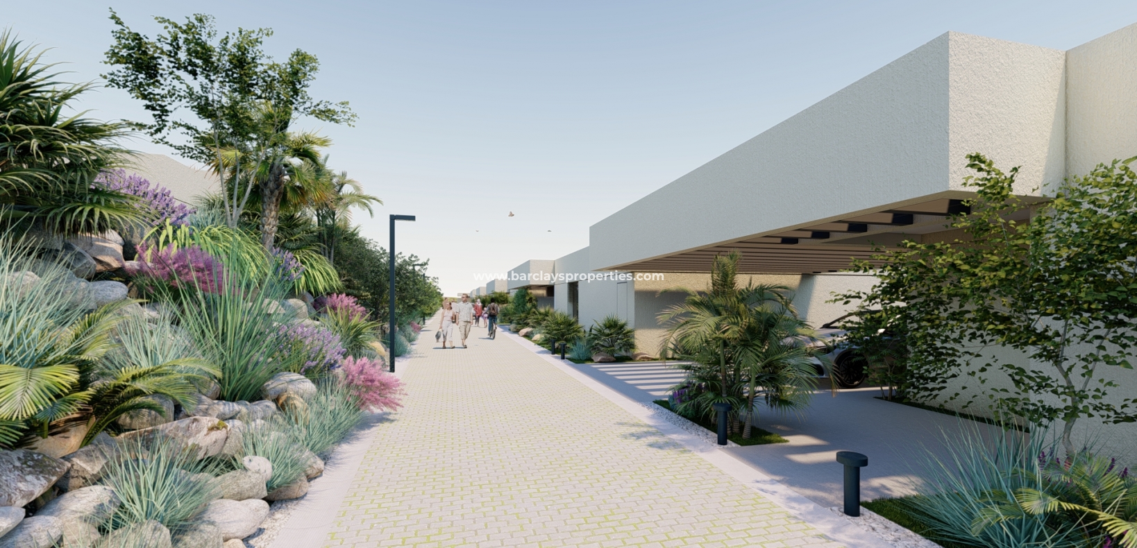 Själva bostäderna är utformade med största uppmärksamhet på komfort, avskildhet och effektivitet. Dessa principer sträcker sig genom hela utvecklingen, vilket ger dig bekväm närhet till stadens bekvämligheter, lokala stränder och medicinska faciliteter av hög kvalitet, alla bara några minuter bort. Trots denna tillgänglighet väntar lugn och frid på dig när du återvänder hem. Dessutom finns två flygplatser inom en timmes bilresa, vilket ger enkel tillgång till avlägsna resmål. Golf Villas presenterar en oöverträffad livsupplevelse i den eftertraktade Costa Calida-regionen!