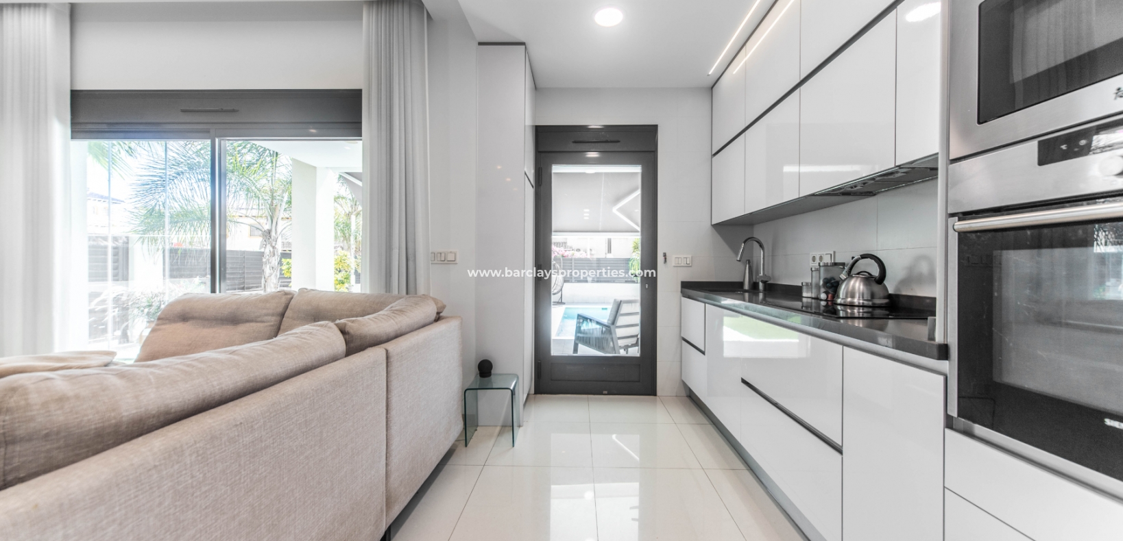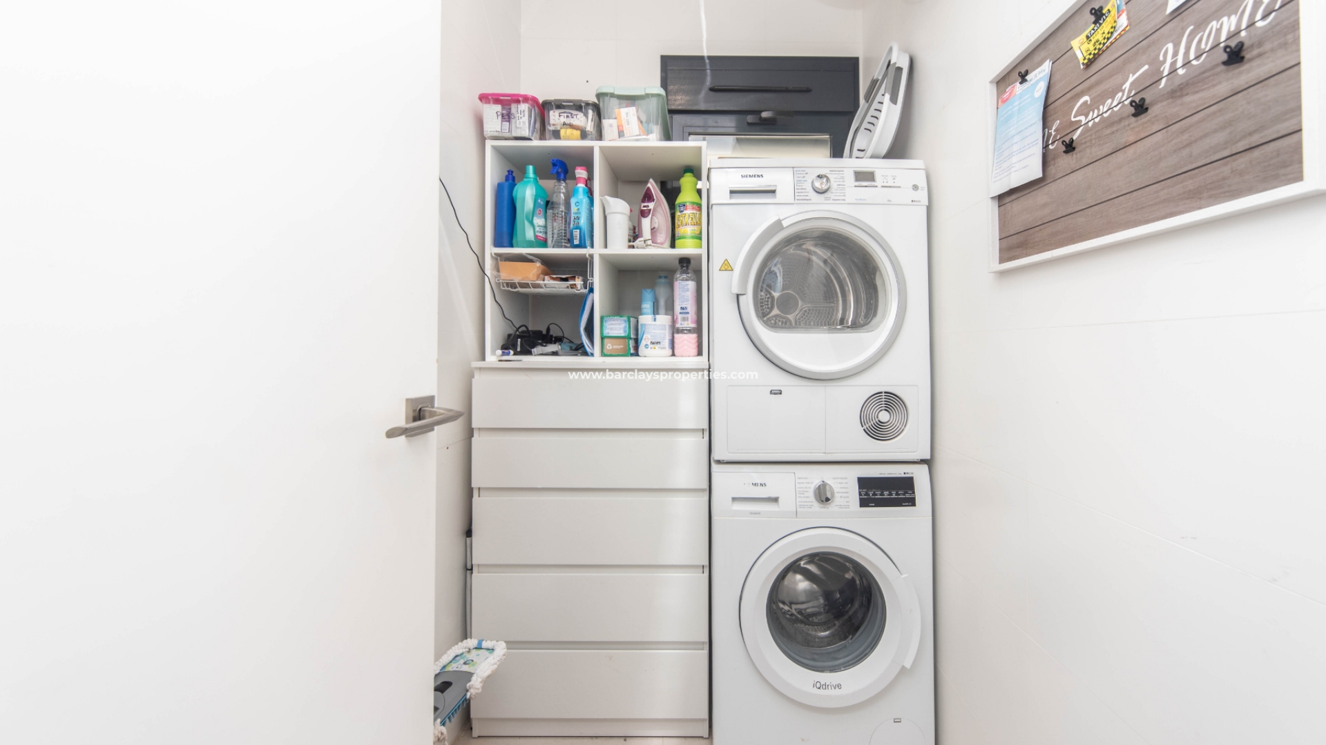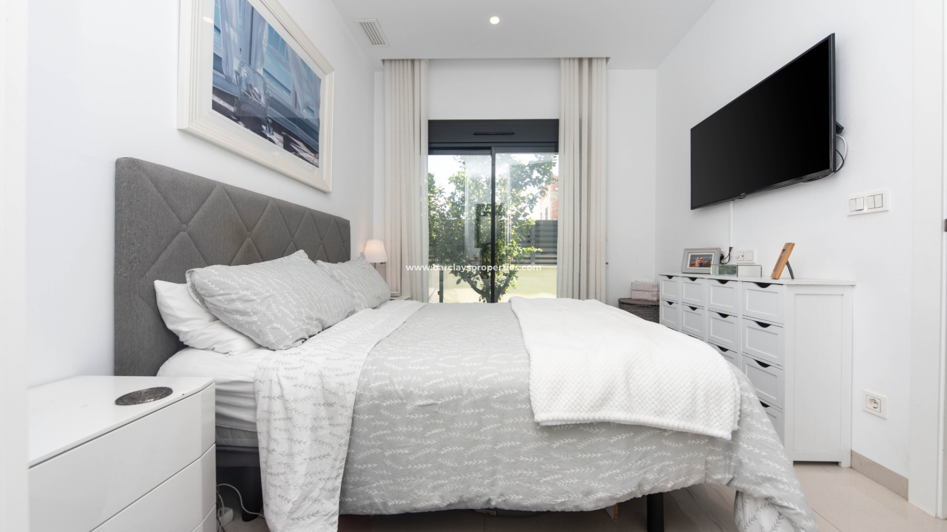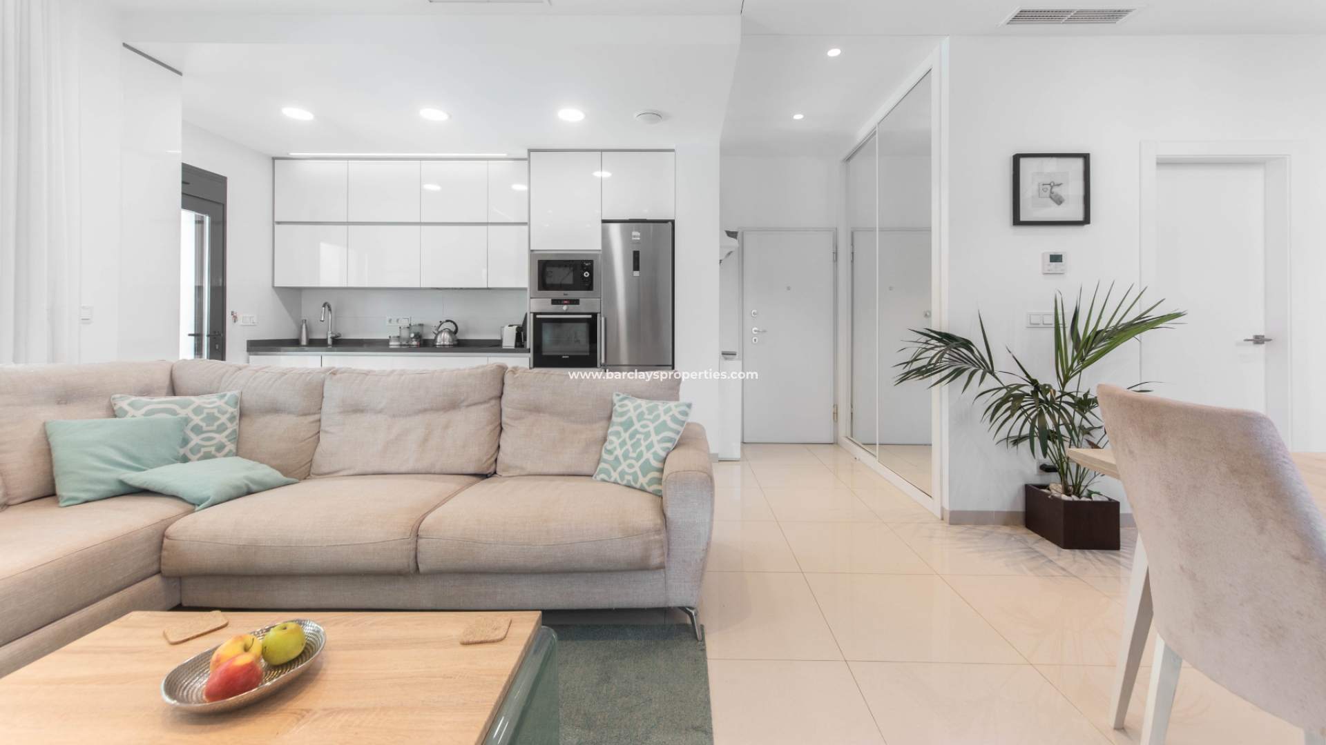 Byn La Marina ligger inom gångavstånd eller några minuters bilfärd och erbjuder ett bra urval av butiker, barer och restauranger. Dessutom finns ett stort utbud av välkända stormarknader i det intilliggande bostadsområdet La Marina, San Fulgencio. För internationella och nationella flygförbindelser ligger den närmaste flygplatsen Alicante-Elche endast 20 minuters bilresa bort.