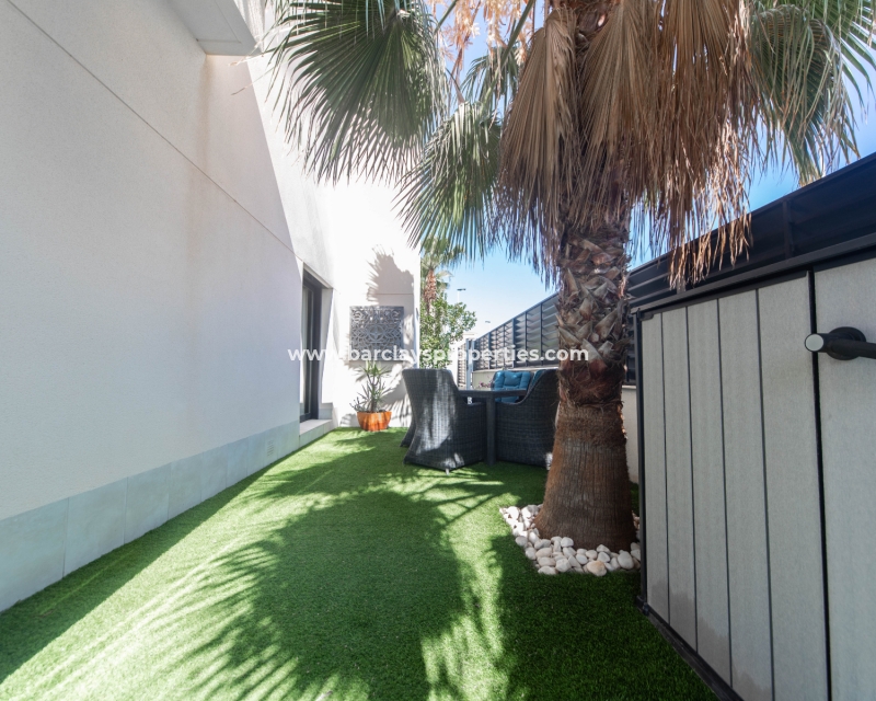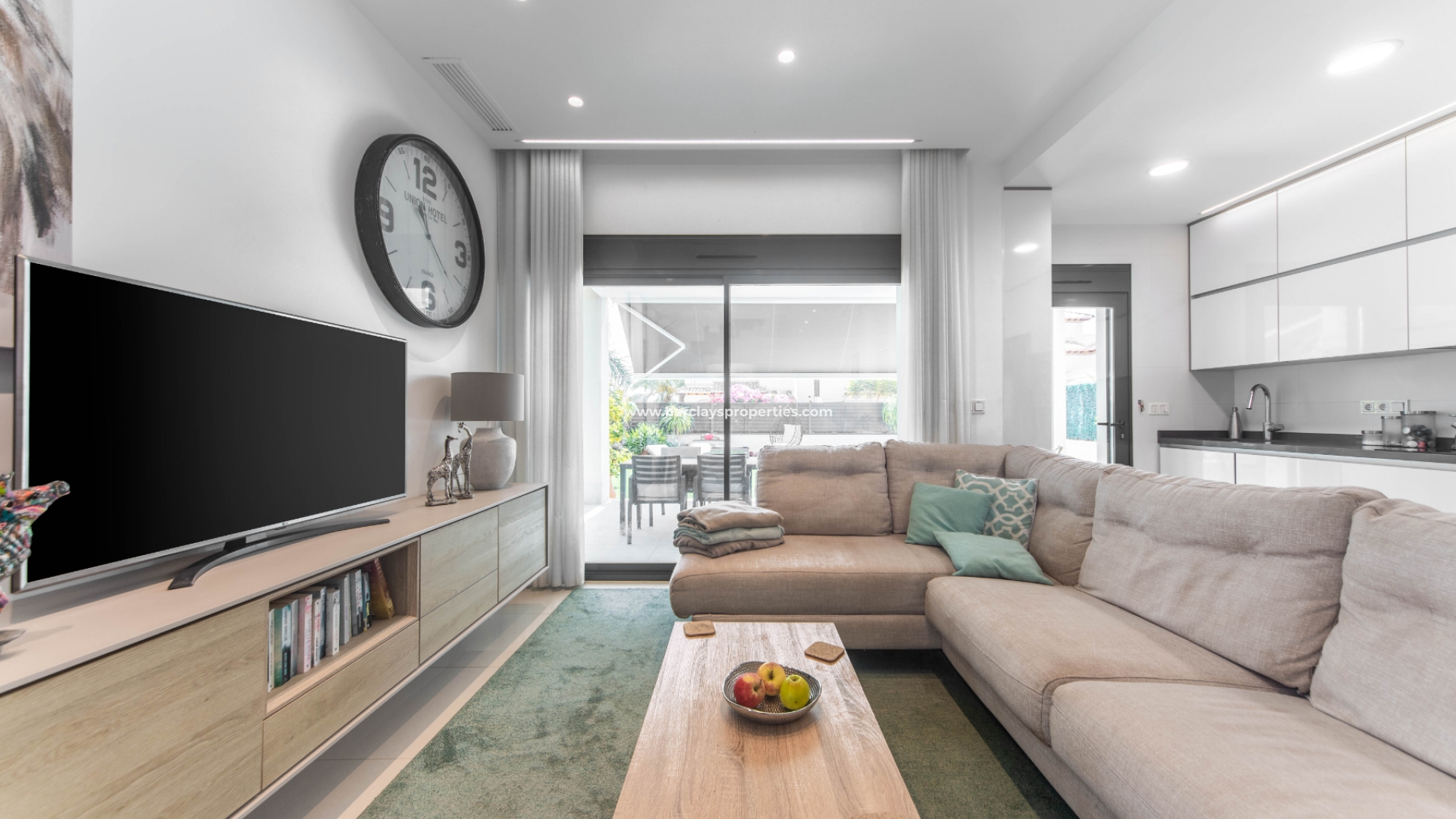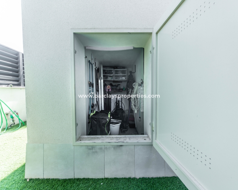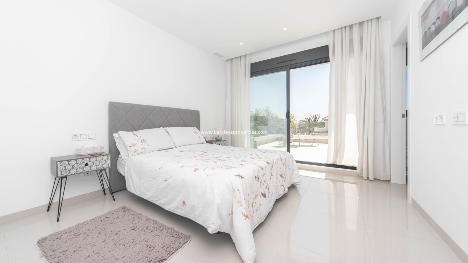 Byn La Marina ligger inom gångavstånd eller några minuters bilfärd och erbjuder ett bra urval av butiker, barer och restauranger. Dessutom finns ett stort utbud av välkända stormarknader i det intilliggande bostadsområdet La Marina, San Fulgencio. För internationella och nationella flygförbindelser ligger den närmaste flygplatsen Alicante-Elche endast 20 minuters bilresa bort.