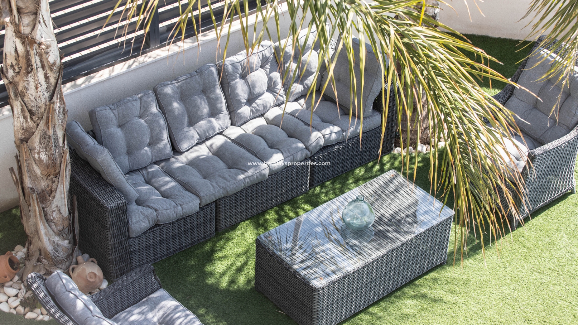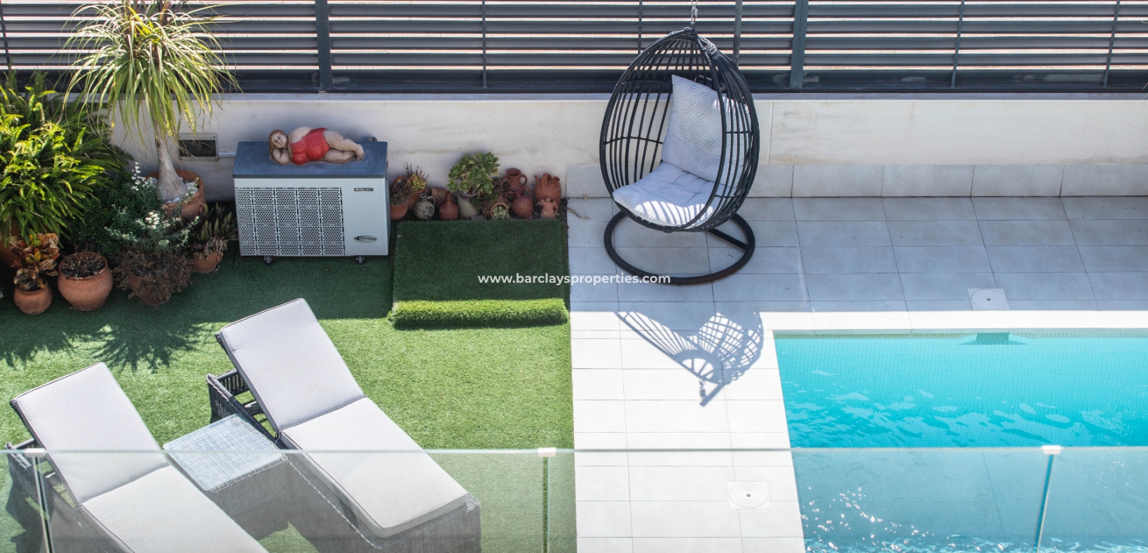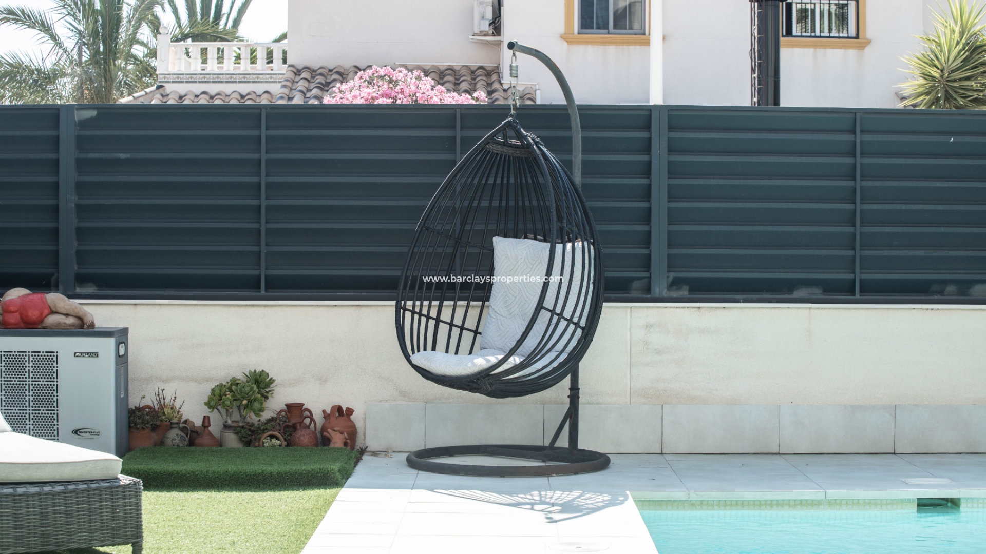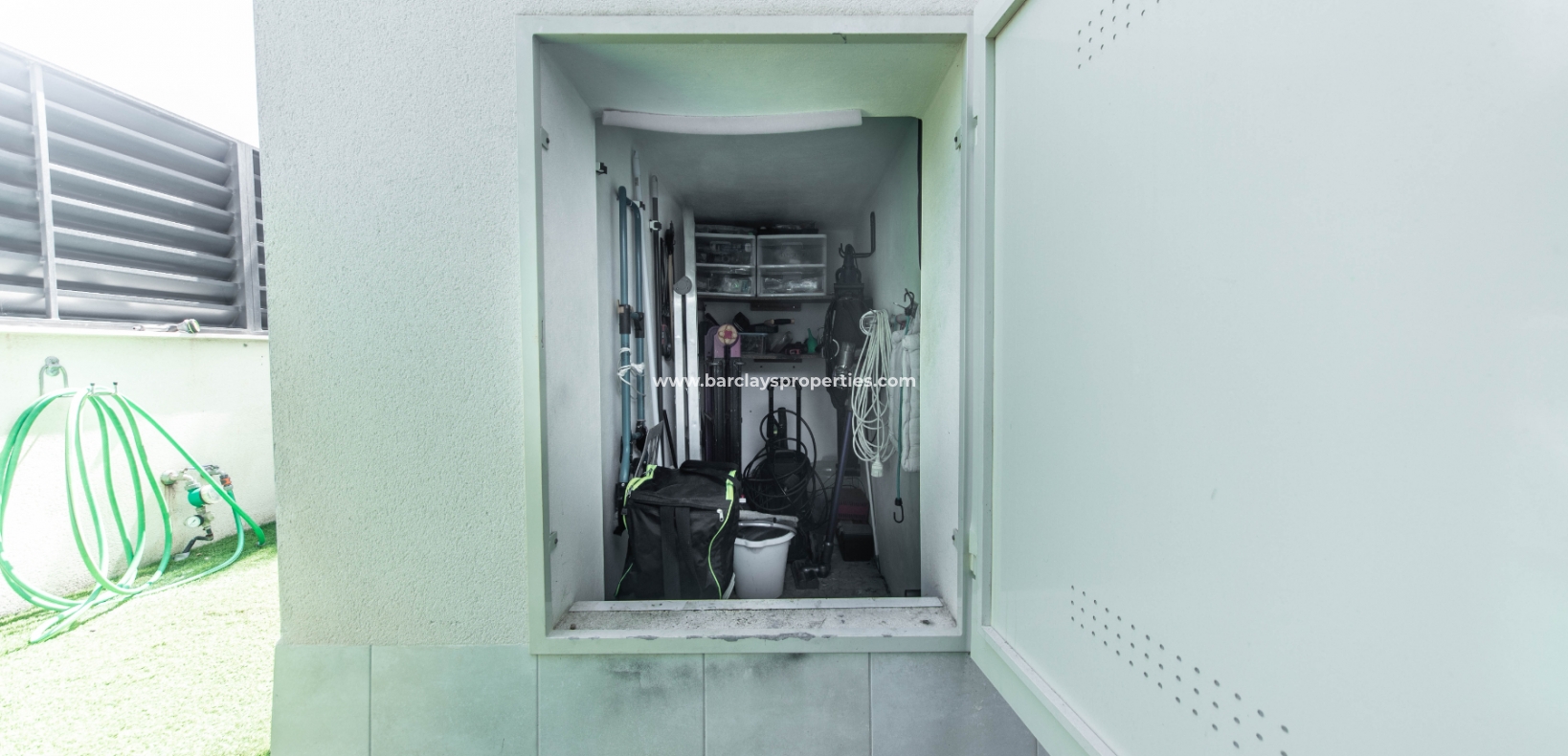 Byn La Marina ligger inom gångavstånd eller några minuters bilfärd och erbjuder ett bra urval av butiker, barer och restauranger. Dessutom finns ett stort utbud av välkända stormarknader i det intilliggande bostadsområdet La Marina, San Fulgencio. För internationella och nationella flygförbindelser ligger den närmaste flygplatsen Alicante-Elche endast 20 minuters bilresa bort.