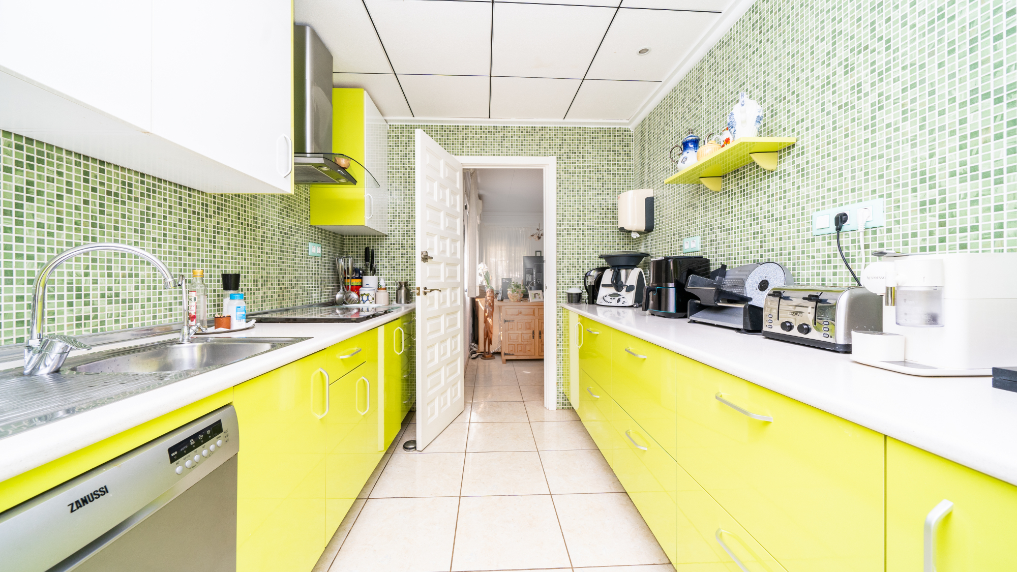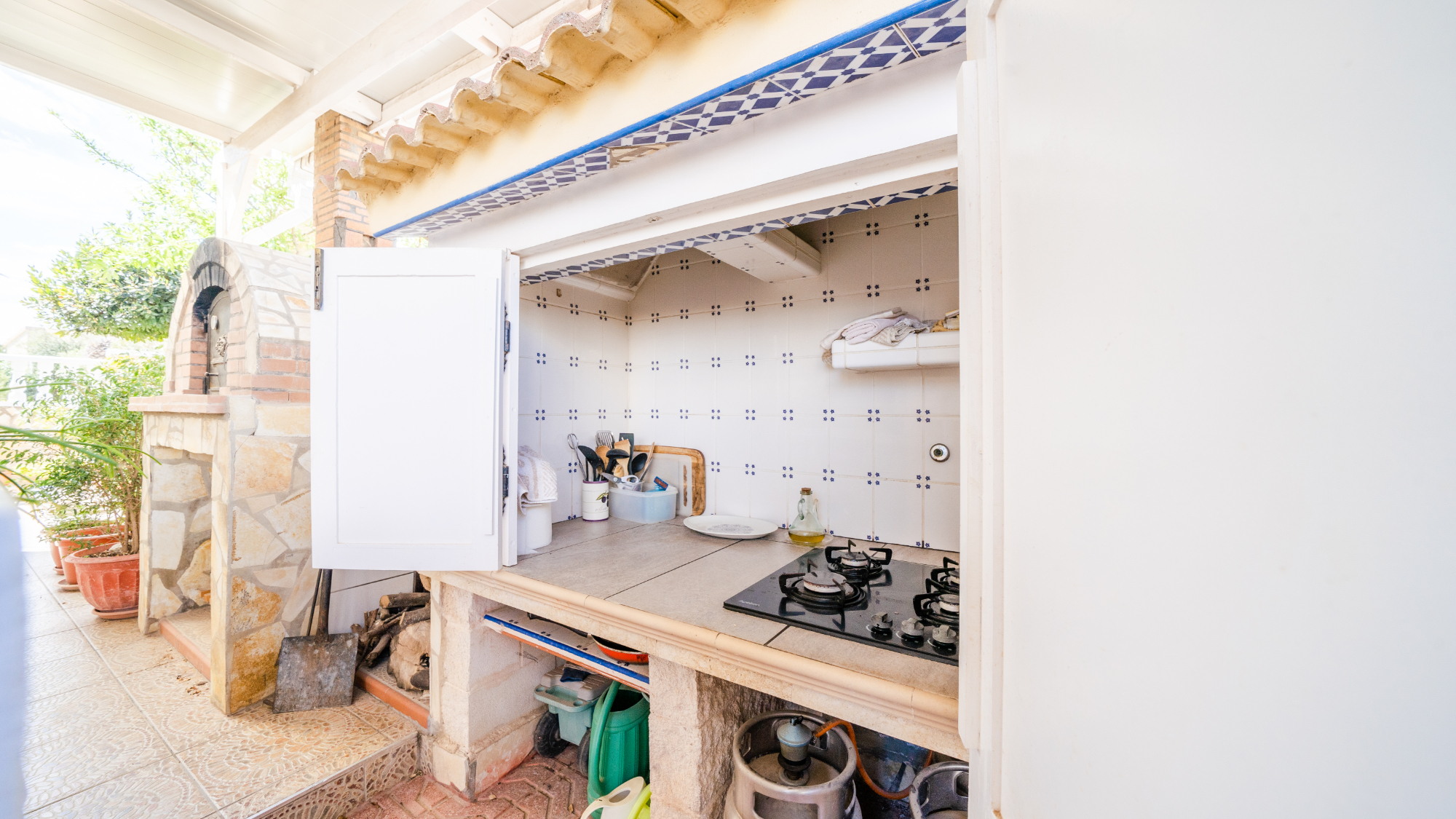 När du går in på fastigheten välkomnas du av en noggrant stenlagd trädgård med en inbjudande utomhusugn och grill, idealisk för "al fresco" -middagar och underhållande gäster. Det välutrustade oberoende köket, prytt med stilrena limegröna enheter, erbjuder modern bekvämlighet med sina helt elektriska apparater inklusive en gas spishäll och gott om förvaringsutrymme.