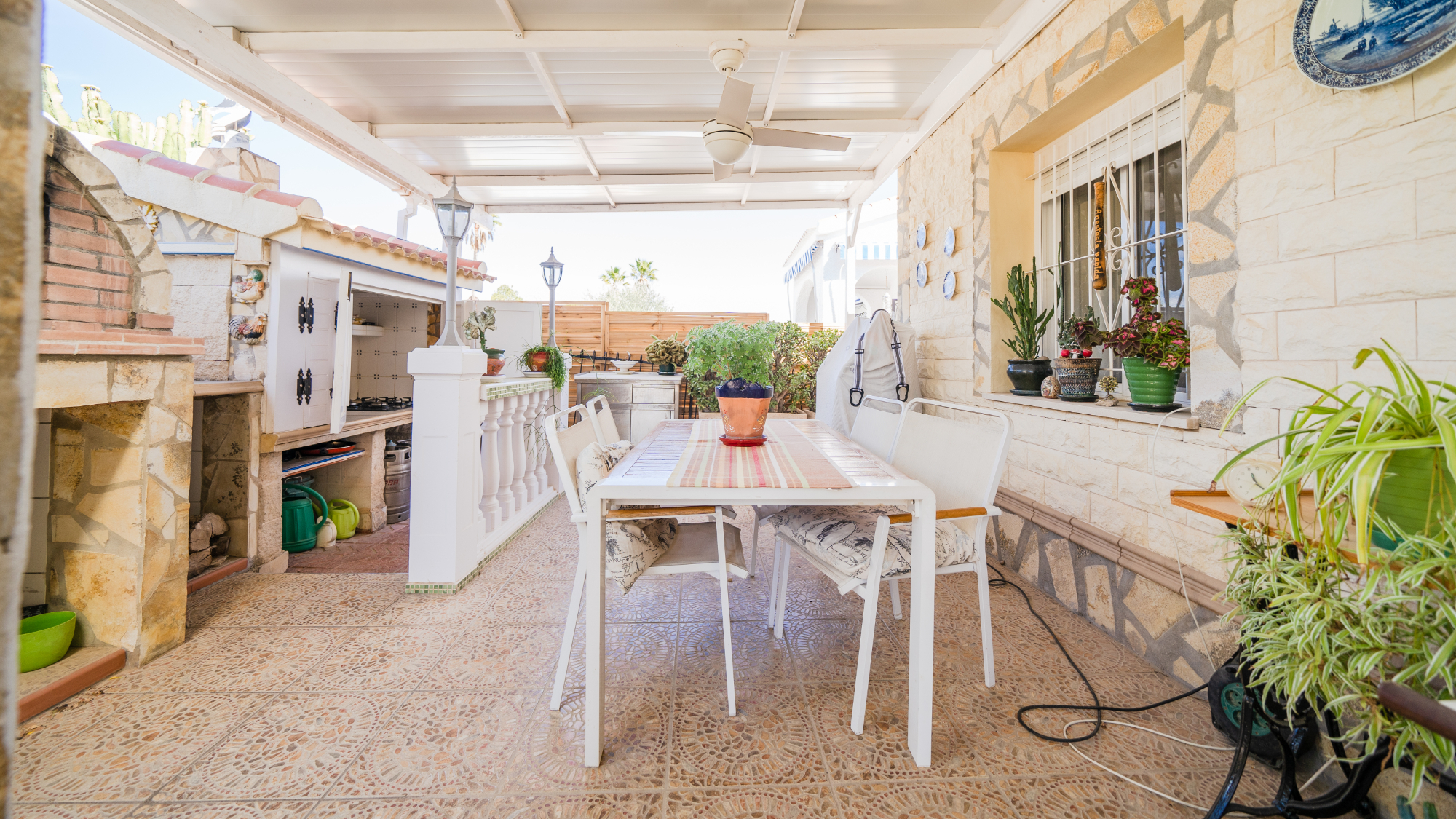 En bakre terrass med förvaring under terrassen och täckt parkering finns på baksidan av fastigheten, vilket ger bekvämlighet och säkerhet. Dessutom har fastigheten ett förråd för att hålla personliga tillhörigheter säkra. En grind leder till det gröna området där många av grannarna håller snyggt och rent och fungerar som ett utökat utomhusutrymme för alla att njuta av.