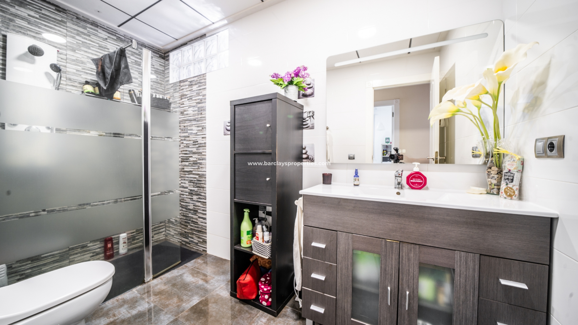 Sovrummen inkluderar ett dubbelrum, ytterligare ett dubbelrum med en walk-in-garderob och ett badrum en suite med en vägg-till-vägg-dusch och tvättställ, samt ett tredje dubbelrum. Huvudbadrummet inkluderar en stor vägg-till-vägg-dusch, WC, bidé och tvättställ. Det rymliga, moderna köket är helt elektriskt ✅, och vardagsrummet/matsalen har en stor garderob för extra förvaring.
