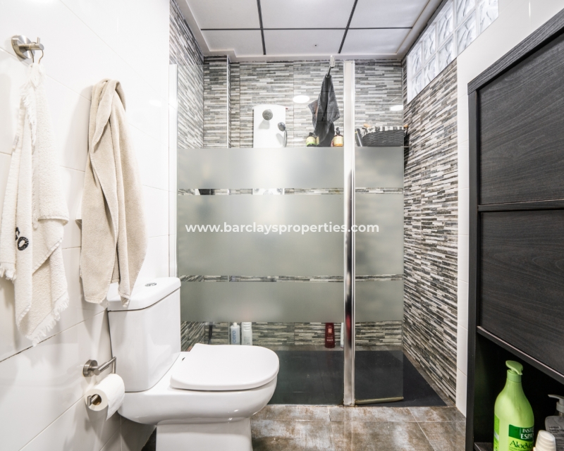 Sovrummen i denna fastighet inkluderar ett dubbelrum med en 8-dörrars inbyggd garderob ✅och spotlights, tillgänglig genom en vacker glasmålad dörr från vardagsrummet, två ytterligare dubbelrum och ett enkelrum som är tillräckligt rymligt för att vara ett dubbelrum. Badrummet är designat med en stor dusch, tvättställ, WC och bidé. Dessutom finns en luftkonditioneringsenhet installerad i hallen som leder till sovrummen för extra komfort.