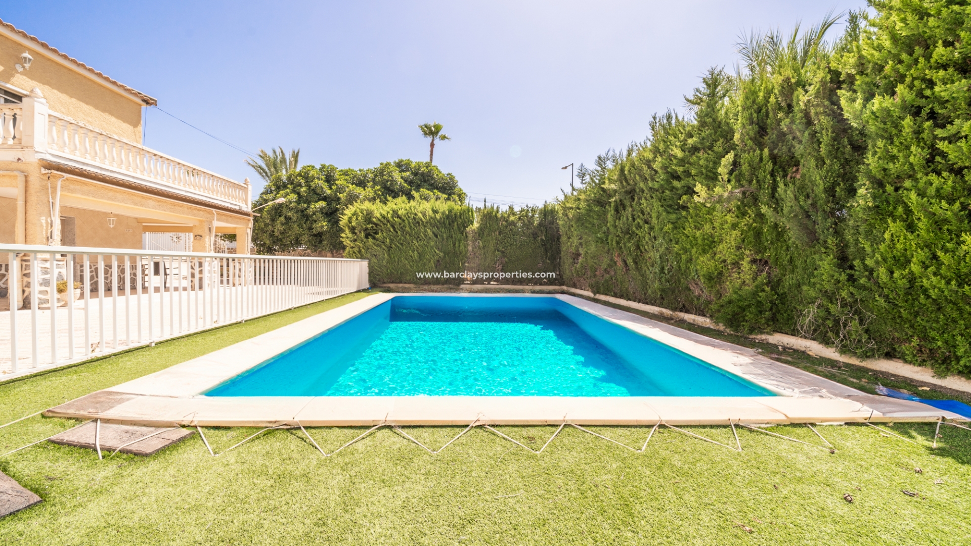 Upptäck ditt drömhem i den vackra, lugna miljön i Urbanisation El Oasis, intill Urb. La Marina i San Fulgencio. Denna magnifika fristående villa erbjuder den perfekta kombinationen av komfort, lyx och utrymme, idealisk för stora familjer eller de som älskar att underhålla gäster.