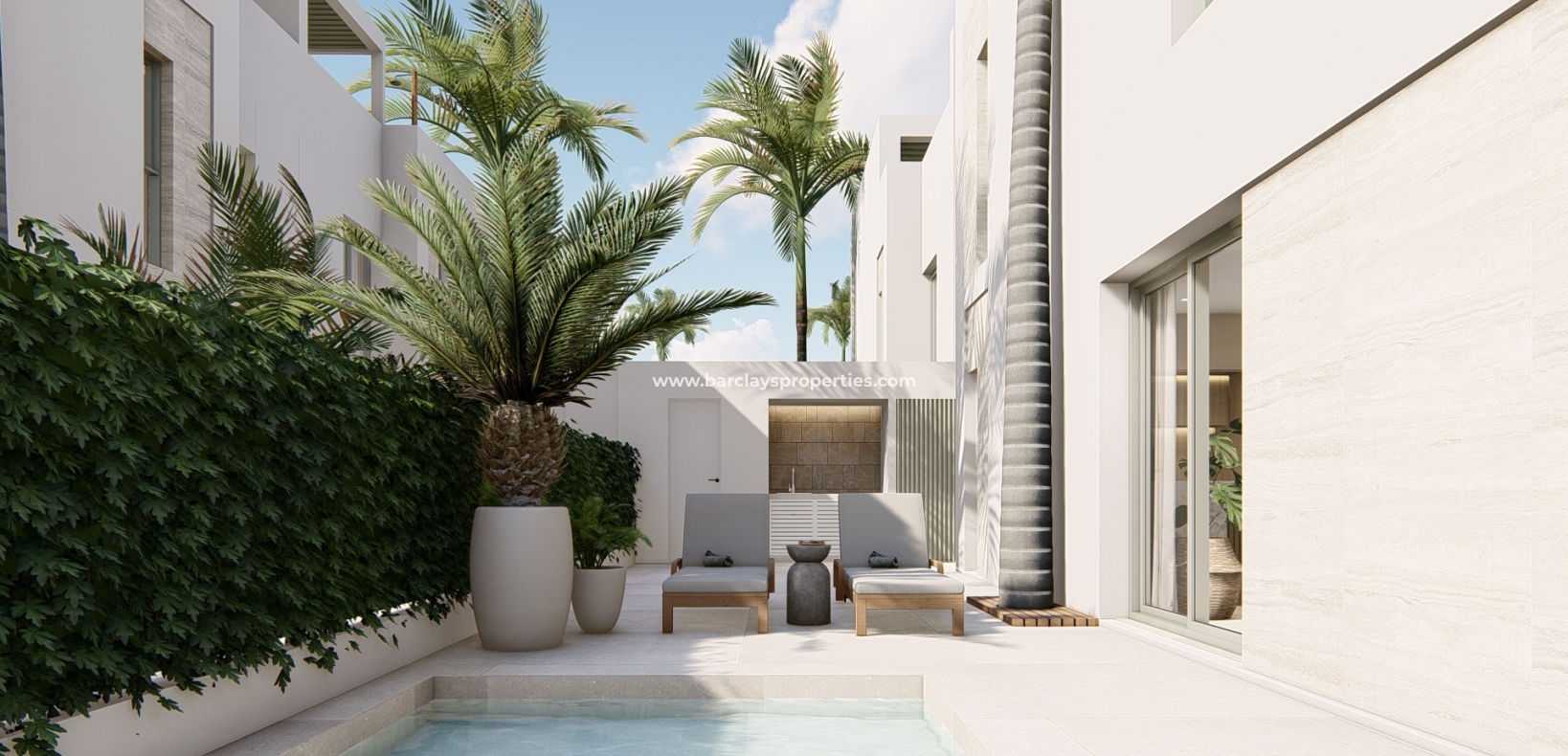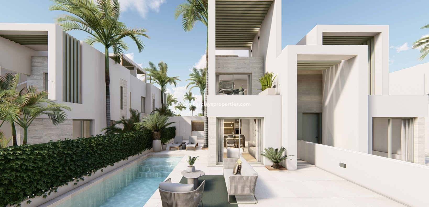 Dessa nybyggda tvåvåningsvillor i Ciudad Quesada erbjuder en perfekt blandning av stil och bekvämlighet. Med 93 m² boyta har de 3 sovrum, 2 badrum och ett öppet kök. Den privata trädgården inkluderar en pool, utedusch och parkeringsplats. Bara 500 meter från bekvämligheter och 8 km från stranden, kommer dessa hem med högkvalitativa funktioner: förstärkta säkerhetsdörrar, elektriska persienner, tvåglasfönster, luftkonditionering och en 10-års garanti. Det aerotermiska vattensystemet säkerställer energieffektivitet, medan det fridfulla men ändå lättillgängliga läget gör detta till en fantastisk investeringsmöjlighet för uthyrning.