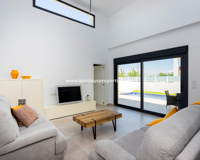 Denna fantastiska nybyggda villa i Daya Nueva har 3 sovrum och 2 badrum, ➡️ allt på ett plan. Med 104 m² modern byggyta på en tomt på 242 m² erbjuder fastigheten ett öppet kök, ett rymligt vardagsrum och privat parkering för en bil. Gå ut till din ➡️ privata pool, perfekt för avkoppling i ett lugnt område samtidigt som du bara är 200 meter från bekvämligheter. Dubbelglasfönster, förinstallerad luftkonditionering och en 10-årig garanti ger komfort och trygghet. Belägen 13 km från stranden, 46 km från flygplatsen och 8 km från golfbanor, ➡️ erbjuder denna villa stor uthyrningspotential i ett attraktivt läge.