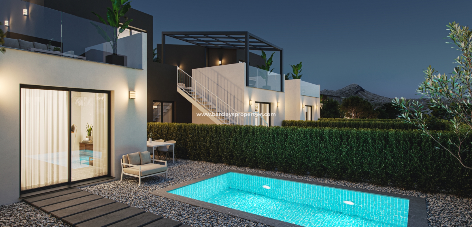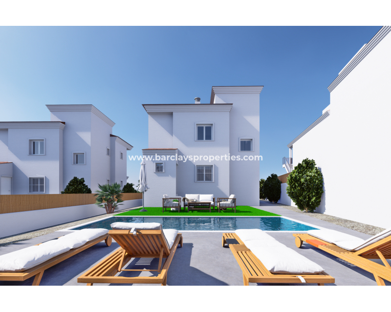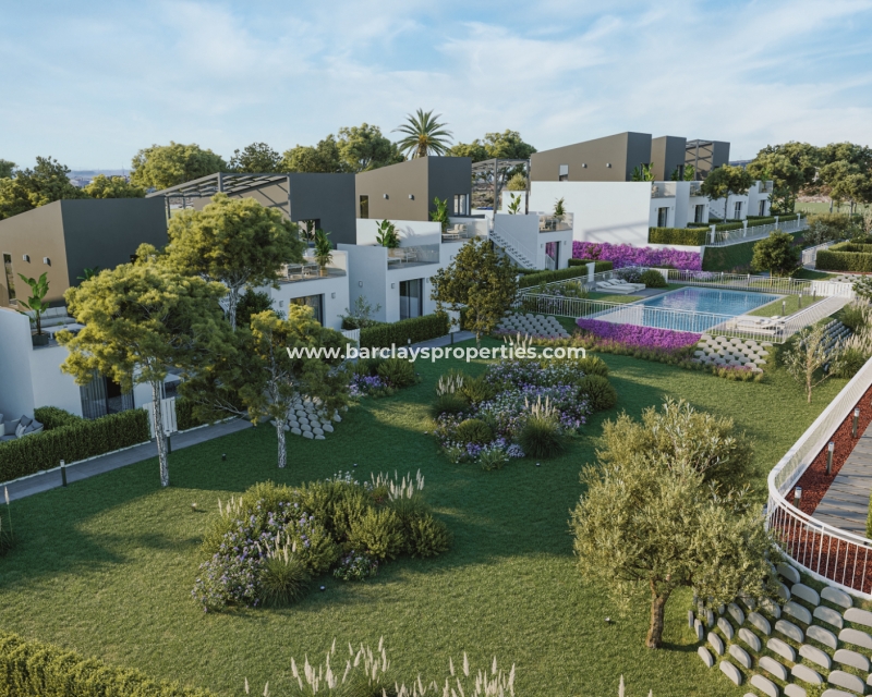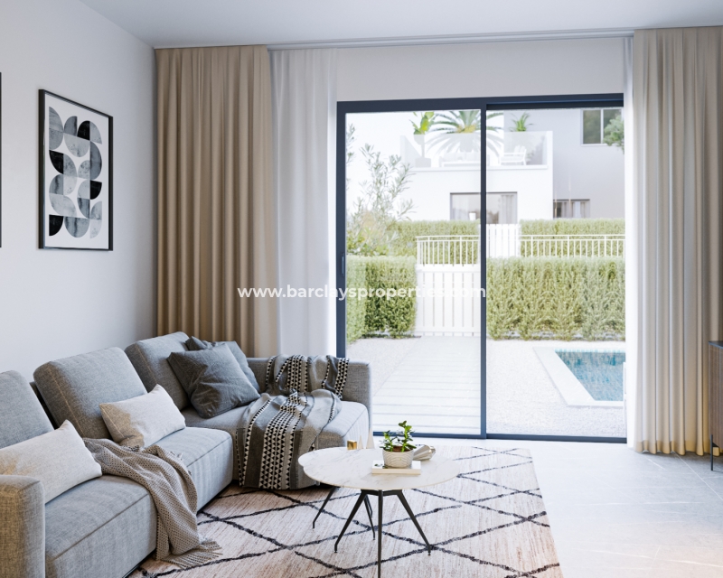 Dessa fantastiska, moderna villor är designade med komfort och funktionalitet i åtanke. Med 2 sovrum, 2 badrum och 76 m² boyta på en enda våning har varje villa en privat tomt på 145 m². Njut av sömlös inomhus- och utomhuslivsstil med ett öppet kök, tvåglasfönster och elektriska persienner. ➡️ Koppla av i den gemensamma poolen, eller välj en villa med en privat pool på 3x5 meter. Husen är utrustade med luftkonditionering, uppvärmning, ett bevattningssystem och ett videosystem för porttelefon. Oavsett om du njuter av din trygga, tysta oas eller de livfulla bekvämligheterna bara 2 km bort, erbjuder dessa villor den perfekta kombinationen av avskildhet och tillgänglighet. ➡️ Större villor med 3 sovrum och 2 badrum på två våningar finns också tillgängliga.