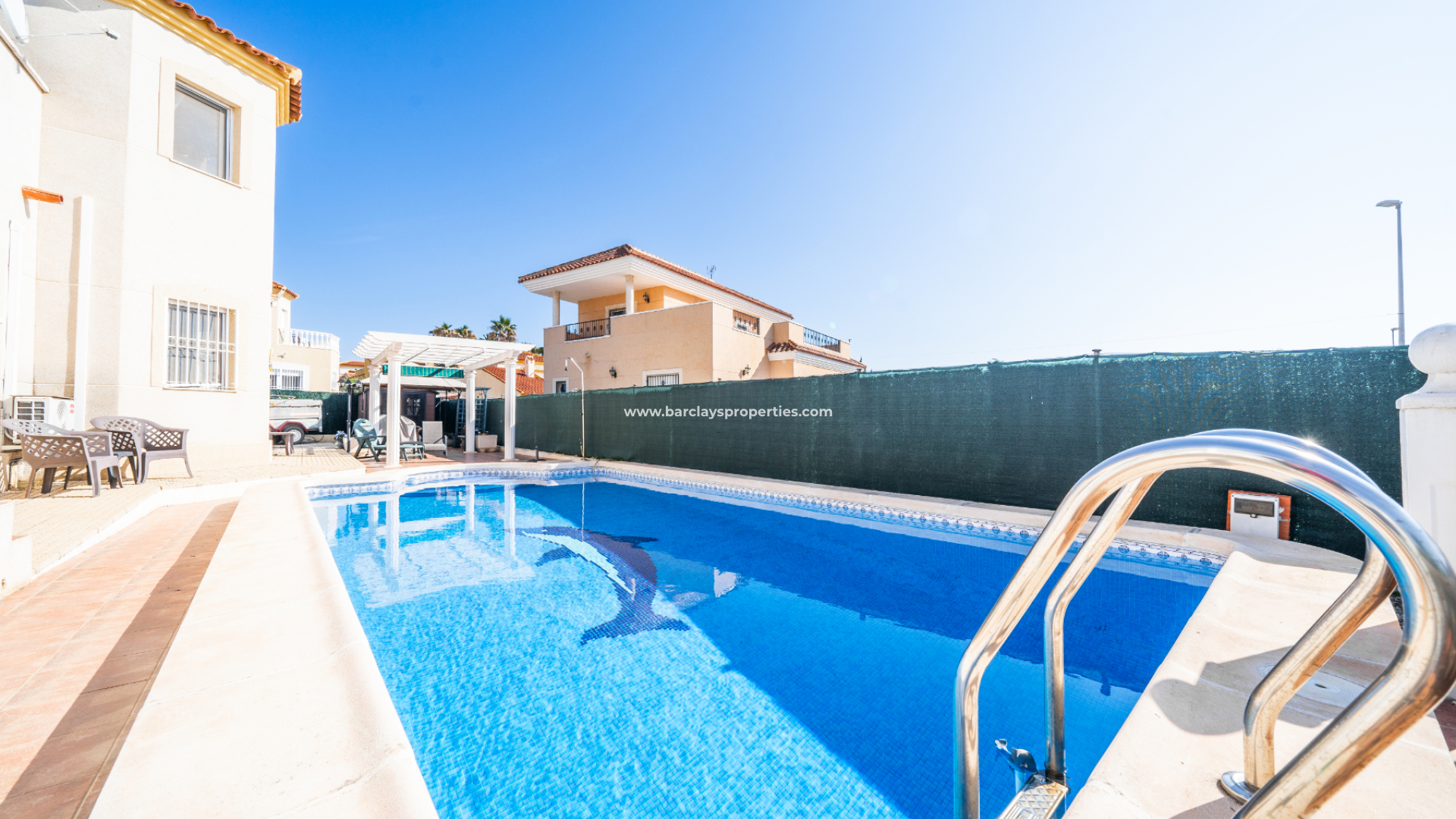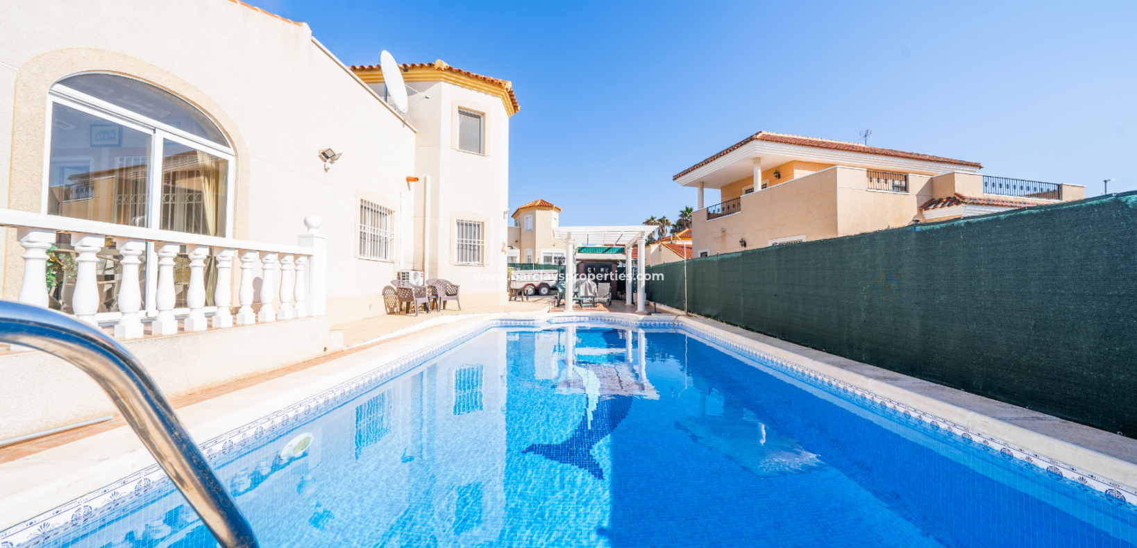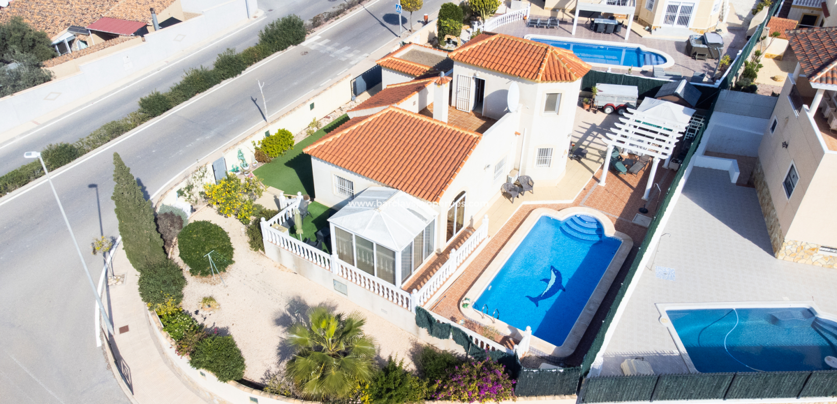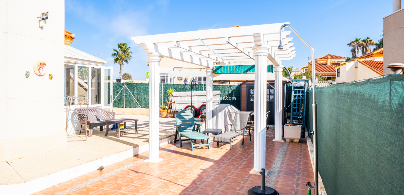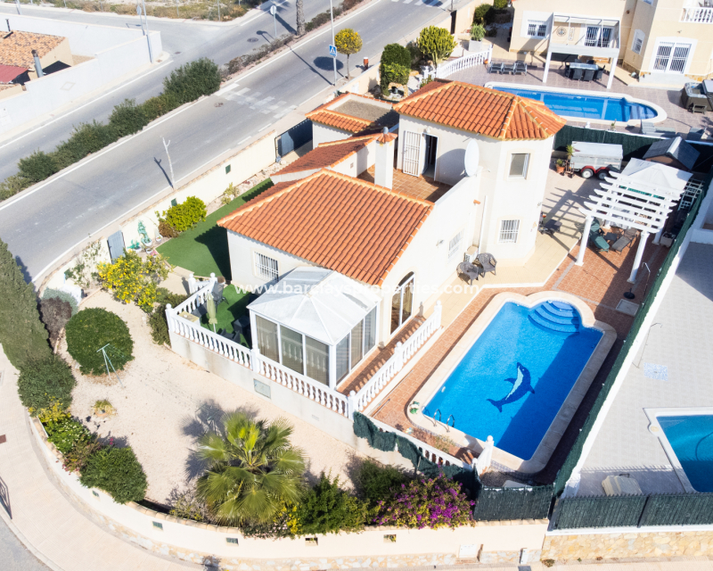 Denna rymliga villa i Urb. La Marina, San Fulgencio, som ligger på en stor hörntomt, erbjuder ett bekvämt boende där bekvämligheter ligger bara 2 minuters promenad från fastigheten. Villan har en fantastisk ✅privat pool på 8 x 4, ett privat garage med ett tvättrum och ett elektriskt skjutport, kompletterat med en panna för centralvärme. Trädgården är väl anlagd med buskar och träd och har många skuggiga och soliga områden för att njuta av det spanska klimatet året runt.