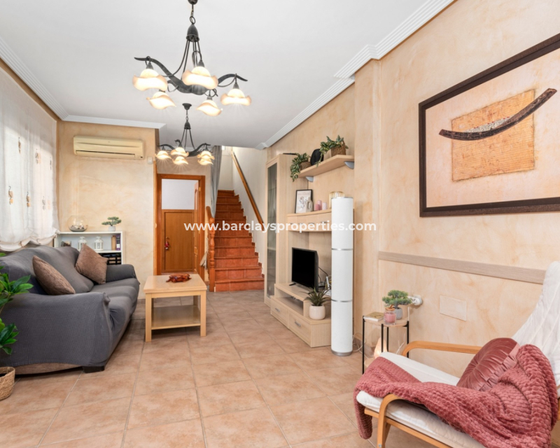 Denna charmiga parhusfastighet i La Marina-urbaniseringen erbjuder 75 m² boyta på en tomt på 160 m², fördelat på två våningar och med ett ✅privat solarium som erbjuder en fantastisk panoramautsikt.