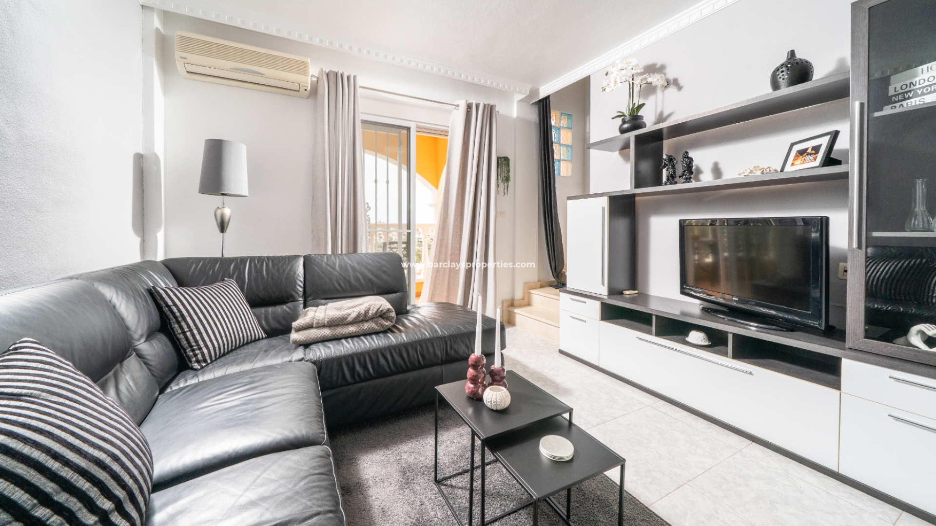 När vi går in i fastigheten finner vi det öppna köket, vardagsrummet och matplatsen med luftkonditionering för komfort året runt. Vardagsrummet öppnar upp till en fin balkong som erbjuder en vacker utsikt, vilket gör det till en utmärkt plats för morgonkaffe eller kvällsavkoppling.