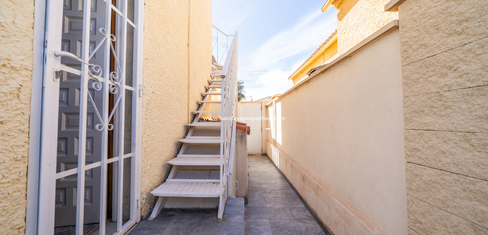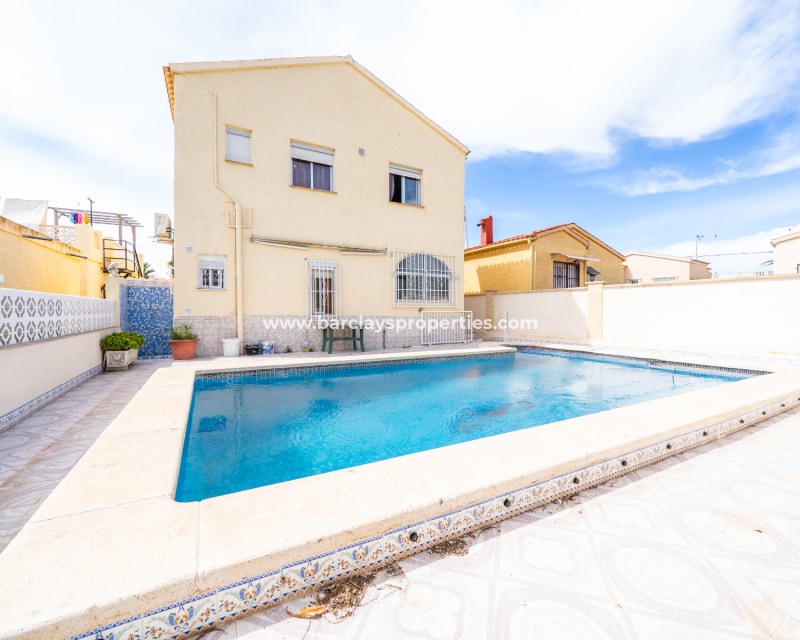 Denna härliga förlängda “Conchi”-modell är belägen i en lugn återvändsgata i ett centralt område av Urb. La Marina, vilket erbjuder bekvämlighet samtidigt som den bibehåller en fridfull atmosfär. Belägen ➡️ nära bekvämligheter endast en 10-minuters promenad bort och en 5-minuters bilresa till den lokala sandstranden i La Marina är denna fastighet väl placerad. Dessutom, eftersom den är västvänd, drar denna villa nytta av naturligt ljus hela dagen.