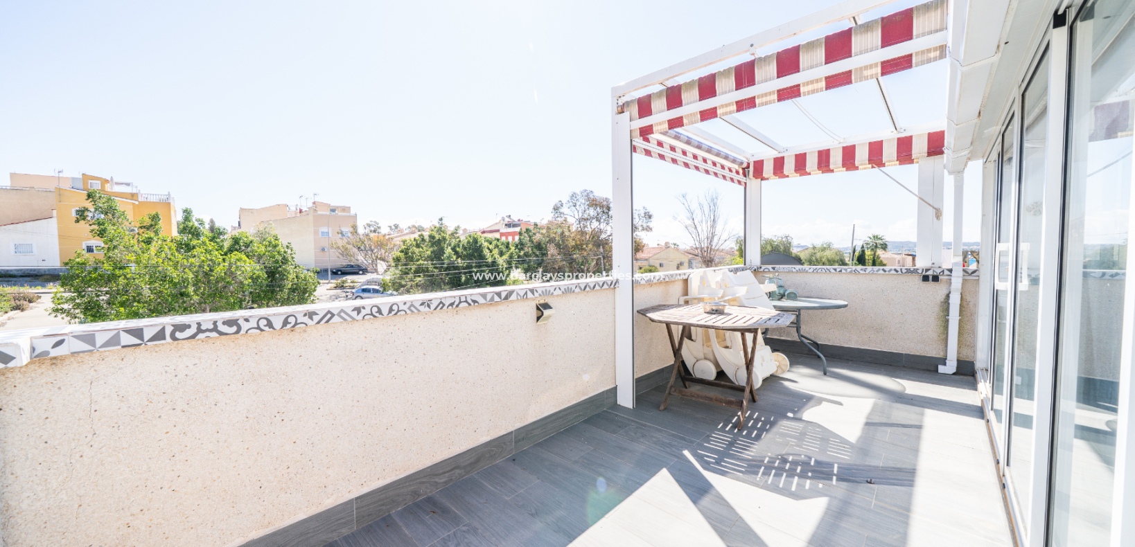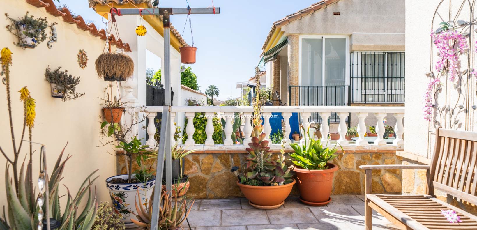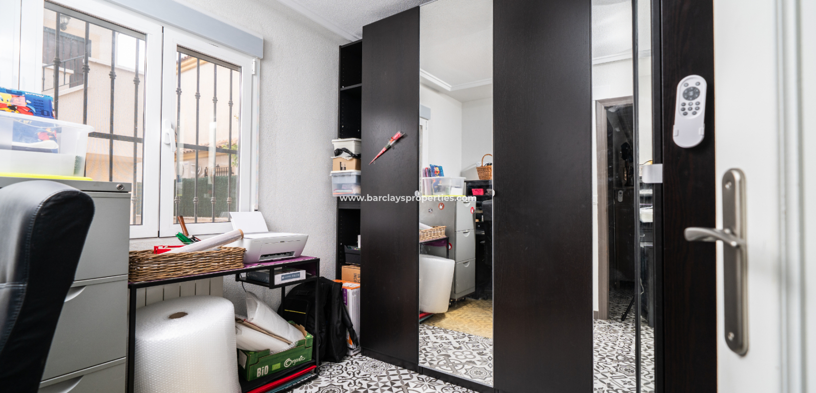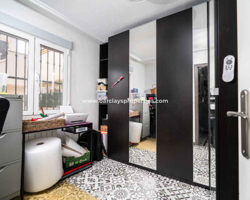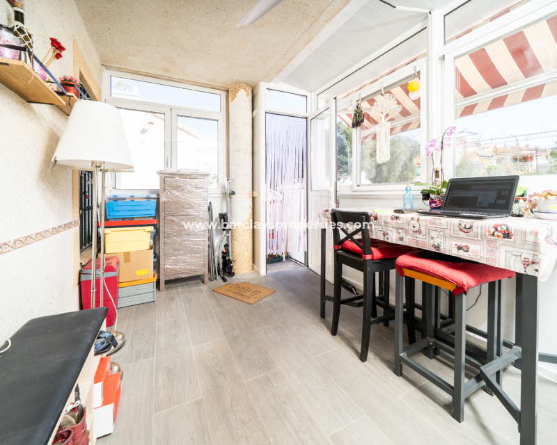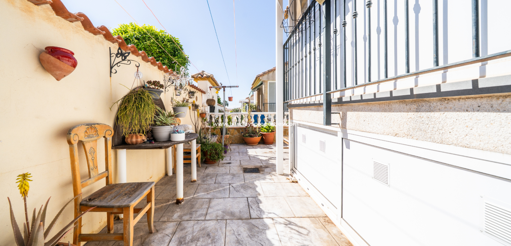 Denna välskötta fristående villa, känd som modellen “Sierra Villas”, är belägen i det eftertraktade bostadsområdet La Marina – endast fem minuters promenad från det livliga “Consum-torget”, där du hittar butiker, restauranger och lokala bekvämligheter inom gångavstånd. Stranden ligger också nära, endast fem minuter bort med bil, och Alicantes flygplats nås på bara 25 minuter.