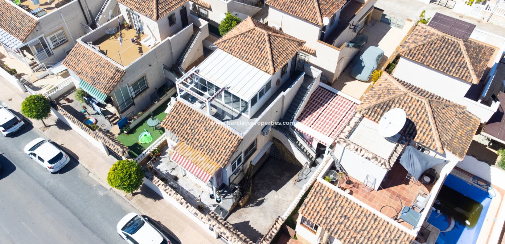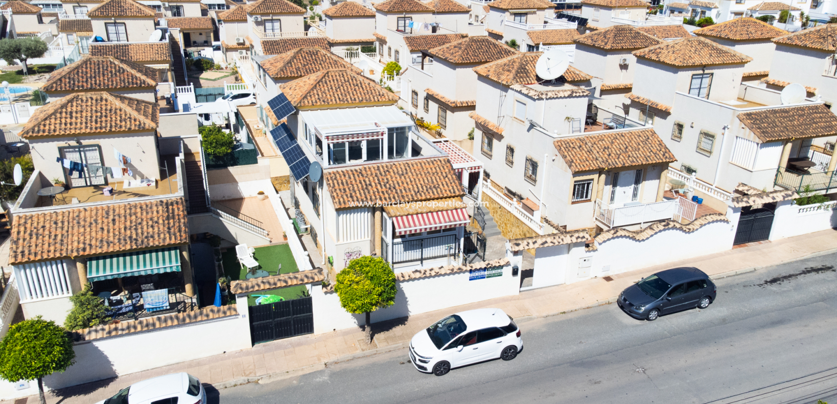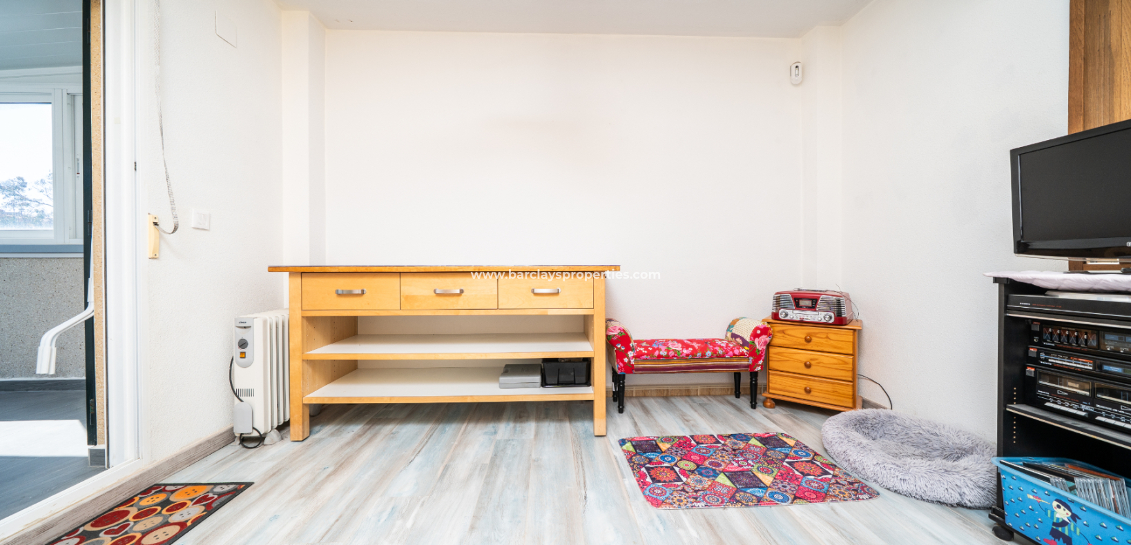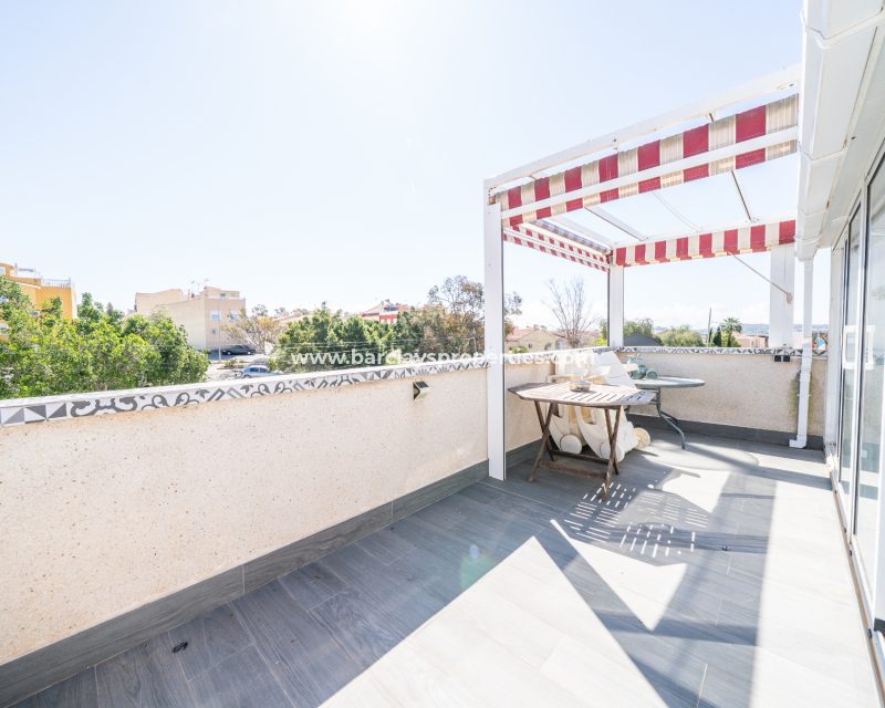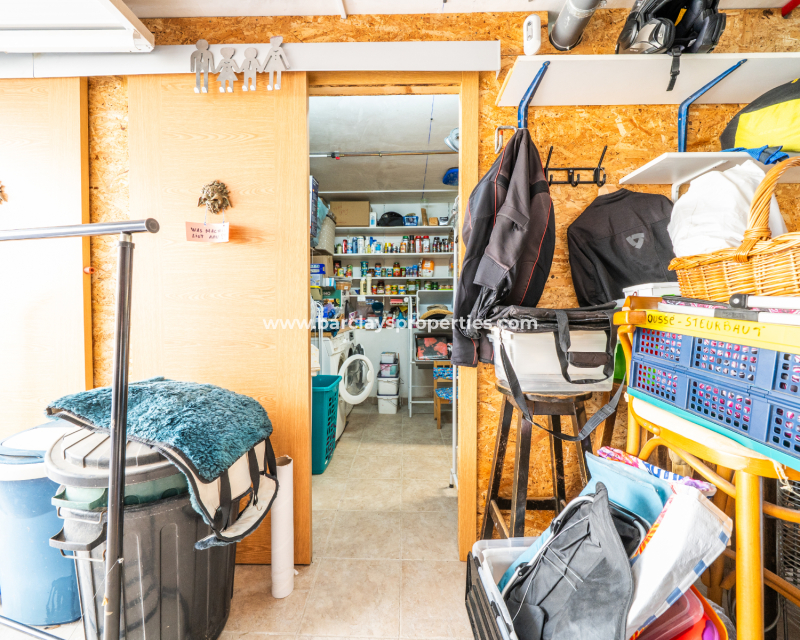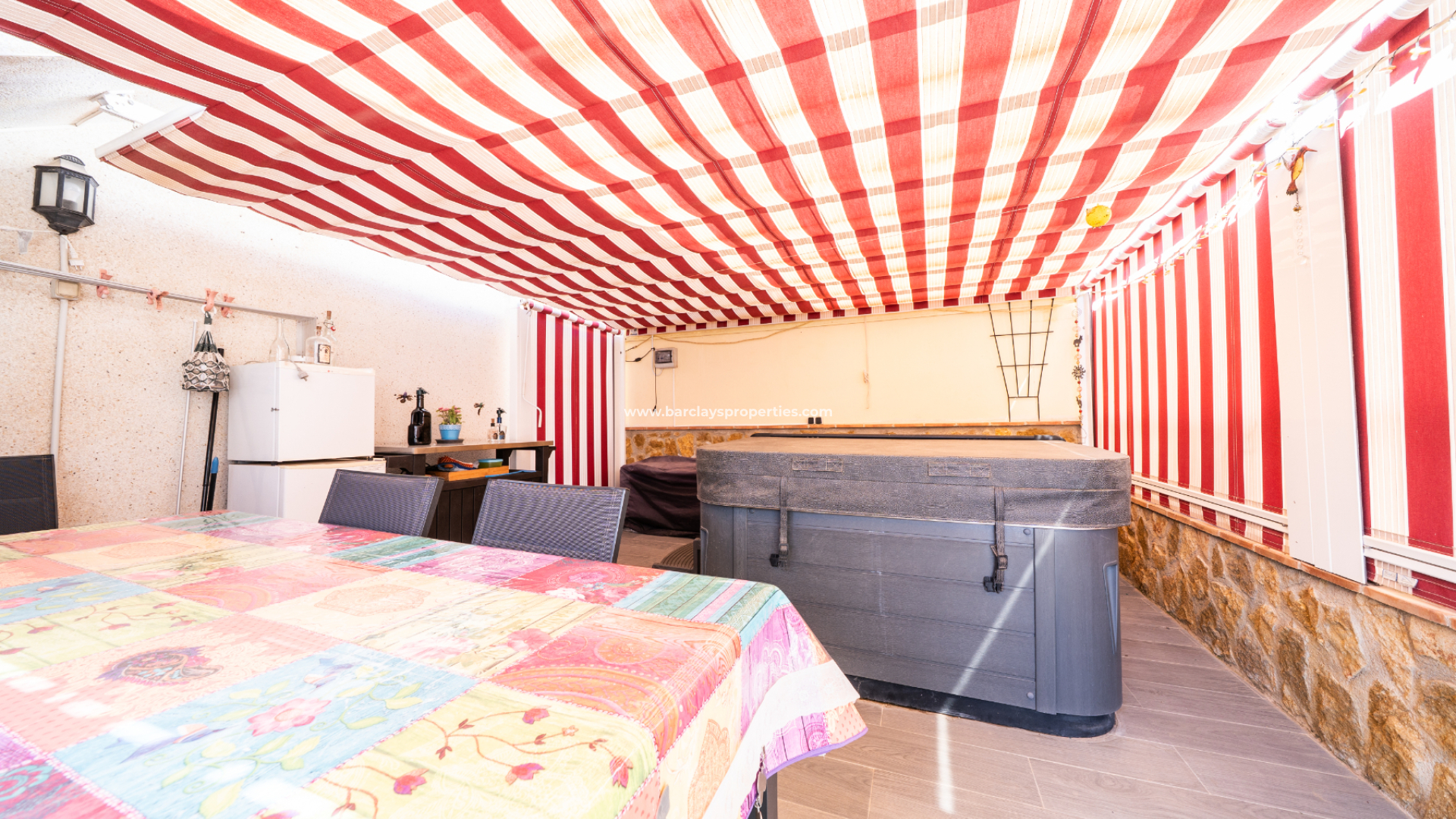 Denna välskötta fristående villa, känd som modellen “Sierra Villas”, är belägen i det eftertraktade bostadsområdet La Marina – endast fem minuters promenad från det livliga “Consum-torget”, där du hittar butiker, restauranger och lokala bekvämligheter inom gångavstånd. Stranden ligger också nära, endast fem minuter bort med bil, och Alicantes flygplats nås på bara 25 minuter.