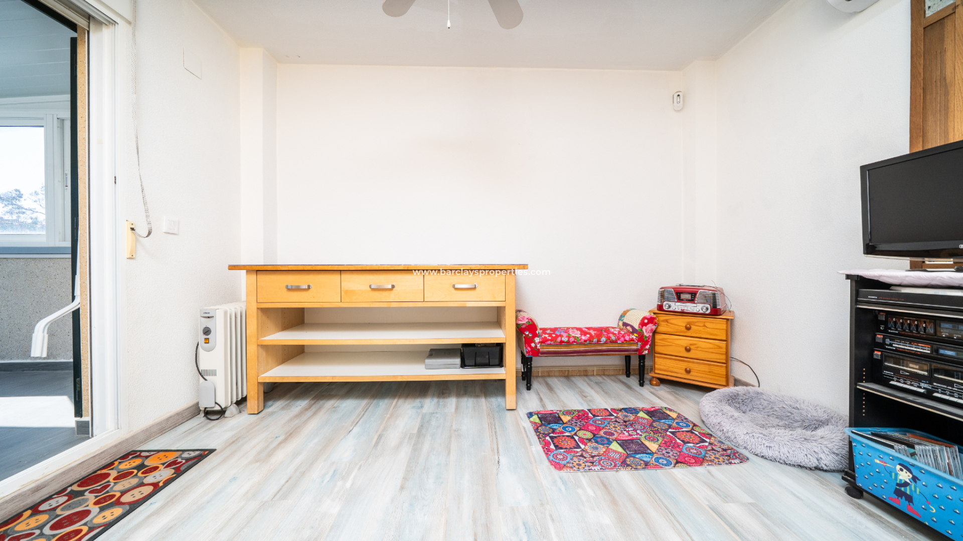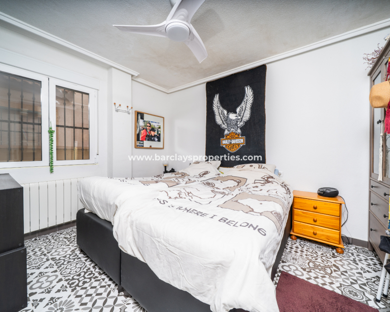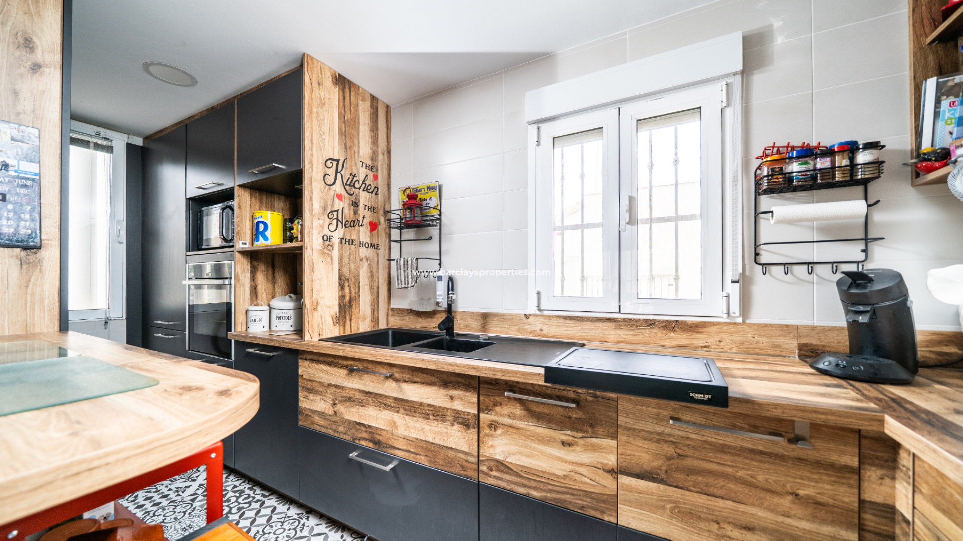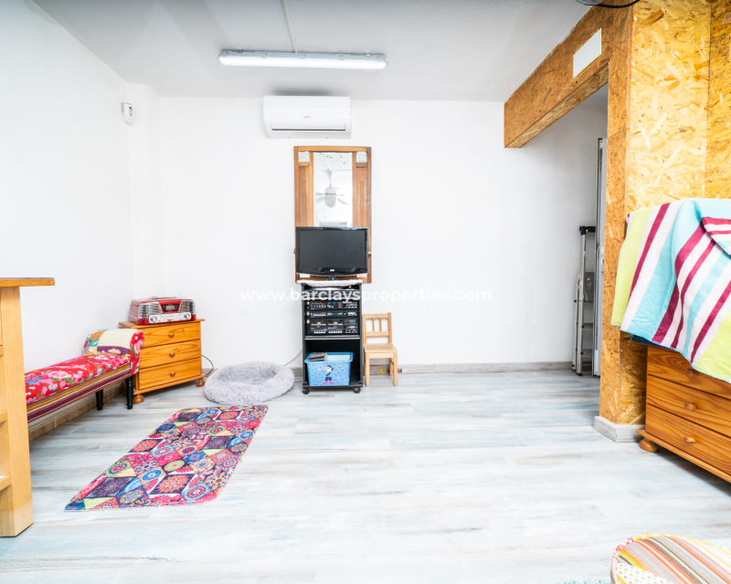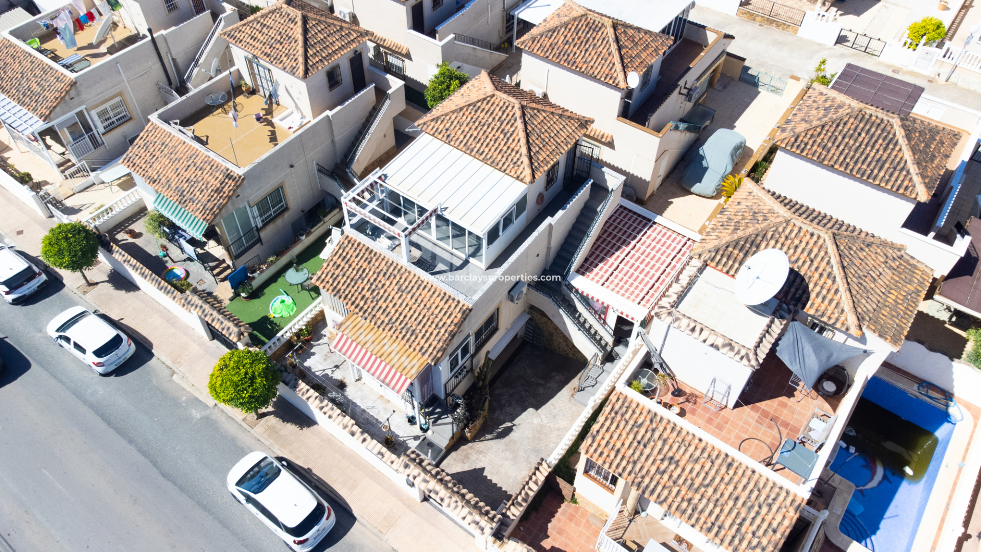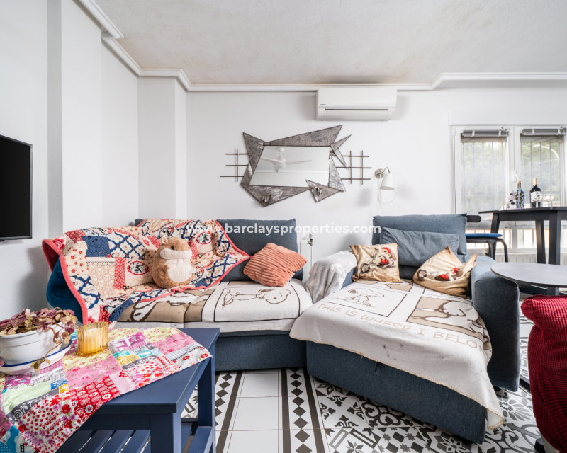 Denna välskötta fristående villa, känd som modellen “Sierra Villas”, är belägen i det eftertraktade bostadsområdet La Marina – endast fem minuters promenad från det livliga “Consum-torget”, där du hittar butiker, restauranger och lokala bekvämligheter inom gångavstånd. Stranden ligger också nära, endast fem minuter bort med bil, och Alicantes flygplats nås på bara 25 minuter.