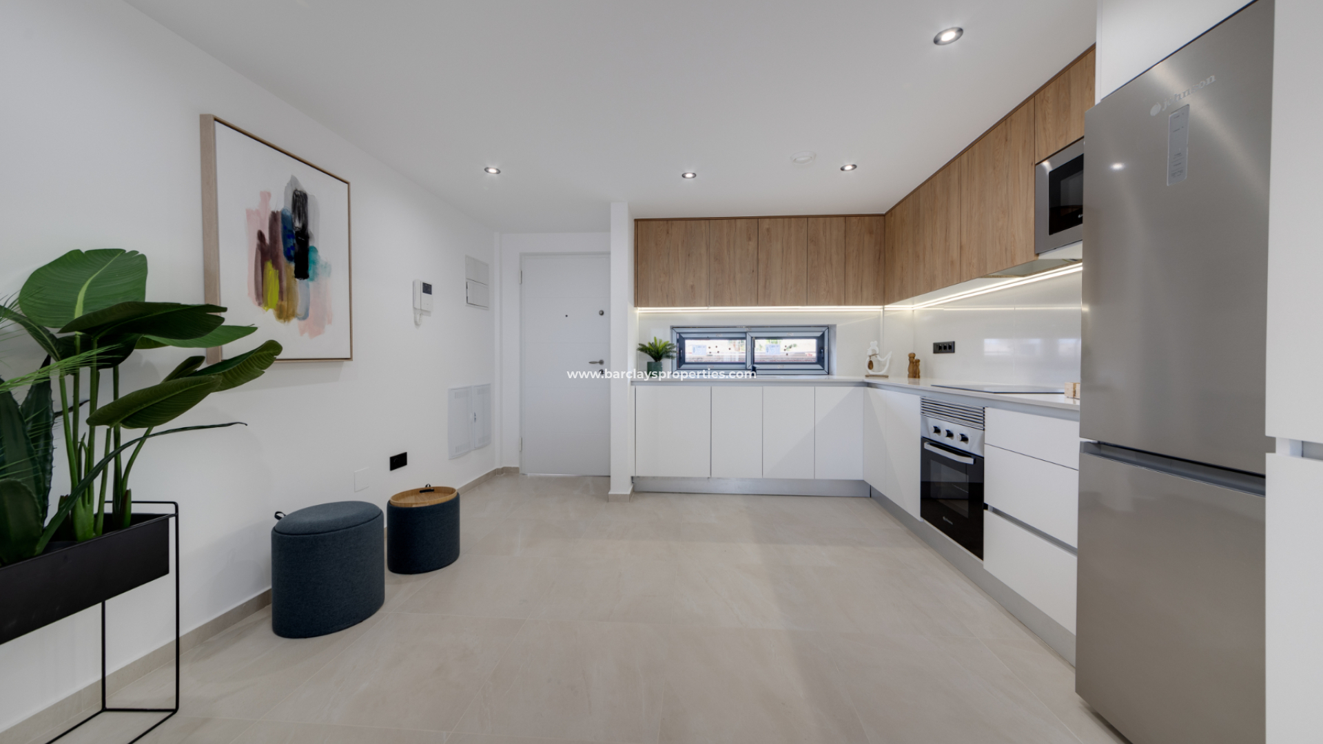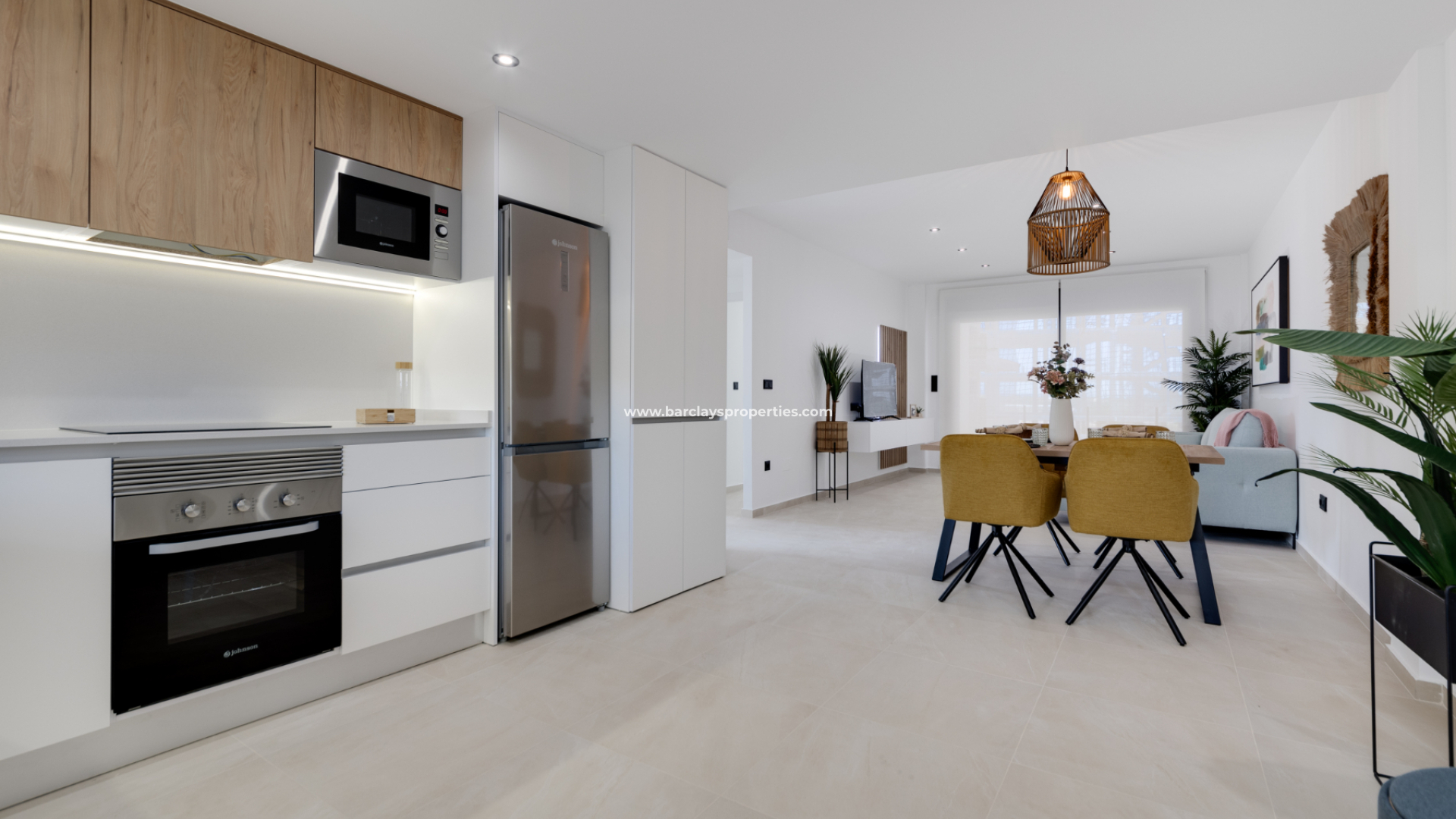 Detta helt nya bostadsområde består av 3 byggnader med ett stort grönområde, swimmingpool och lekplatser. Beläget i det lugna och vackra området Euro Roda, nära Los Alcázares, erbjuder detta projekt 78 moderna och rymliga lägenheter med 2 eller 3 sovrum och 2 badrum. Varje lägenhet har ett öppet vardagsrum med amerikanskt kök och en underjordisk parkeringsplats.