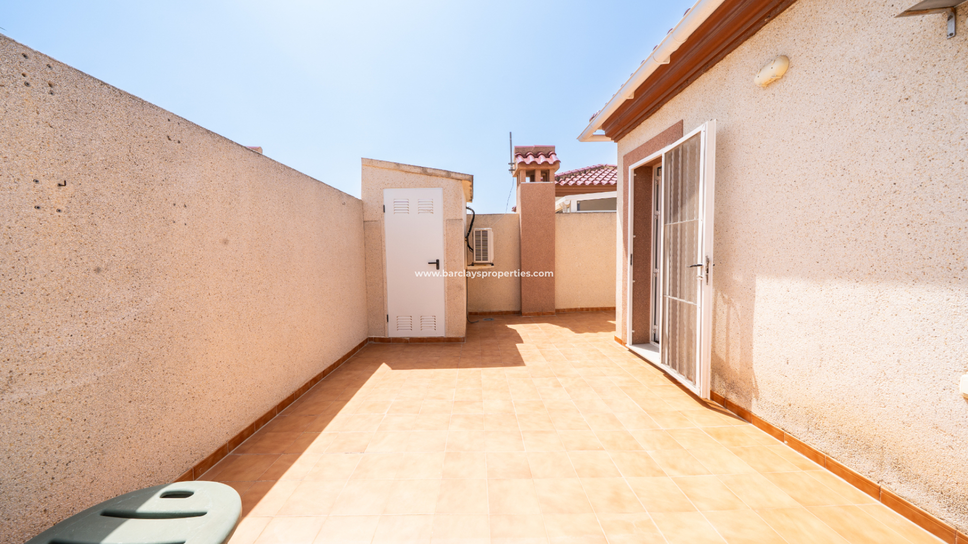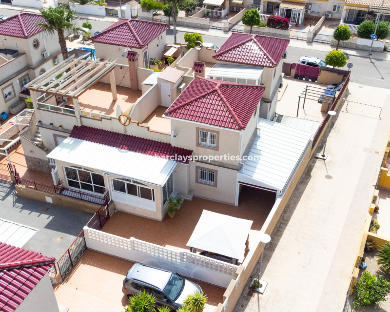 Låt oss presentera denna välskötta "Elena" modell fyrbäddarsfastighet med 3 sovrum och 2 badrum som ligger i den eftertraktade Urbanisation La Marina, San Fulgencio, bara fem minuters promenad till bekvämligheter, fem minuter med bil från de prisbelönta gyllene sandstränderna i Playas de La Marina och 25 minuter från Alicante flygplats.