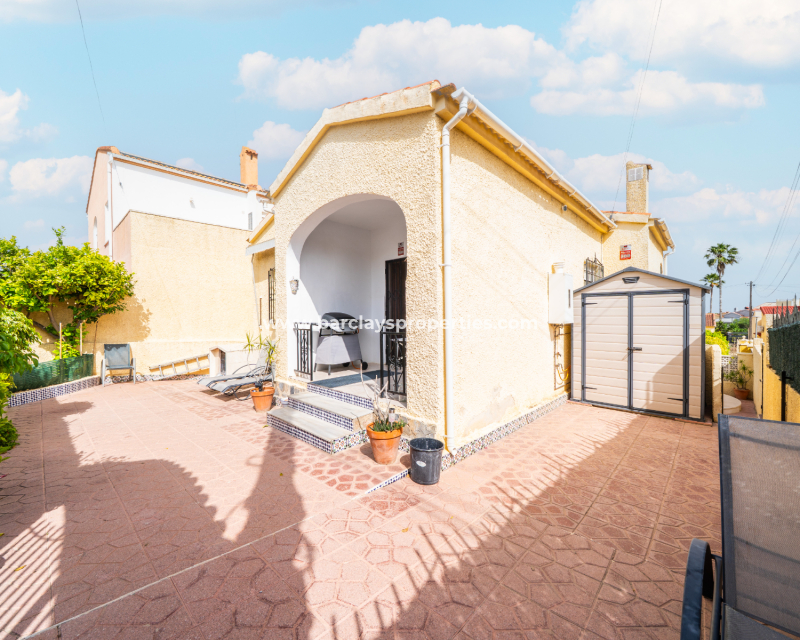 Framför huset finns en stenlagd trädgård som kräver minimalt underhåll. På baksidan hittar vi en ✅fantastisk privat pool på 8 x 4 meter – perfekt för att svalka sig under sommarmånaderna. Här finns även ett praktiskt förråd och en källarvåning med utrymme för förvaring eller hobbyverksamhet.