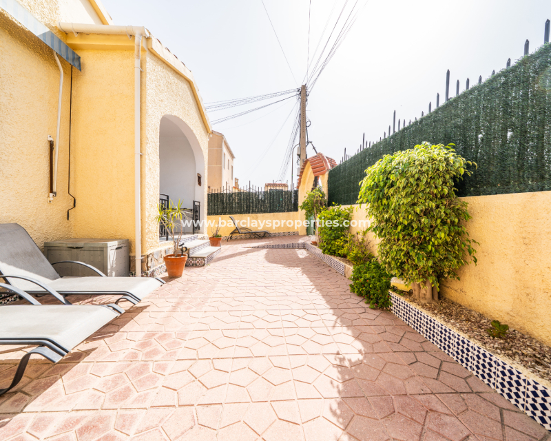 Denna charmiga fristående villa, modell “Conchi”, i det populära bostadsområdet La Marina på Costa Blanca erbjuder ett mångsidigt boende på två våningar – perfekt för stora familjer eller gästande besökare. Belägen bara några minuters promenad från bekvämligheter och det lokala vattenlandet (öppet under högsäsong), har villan fri utsikt över ✅”El Molar”-landskapet – populärt bland vandrare och mountainbikeentusiaster.