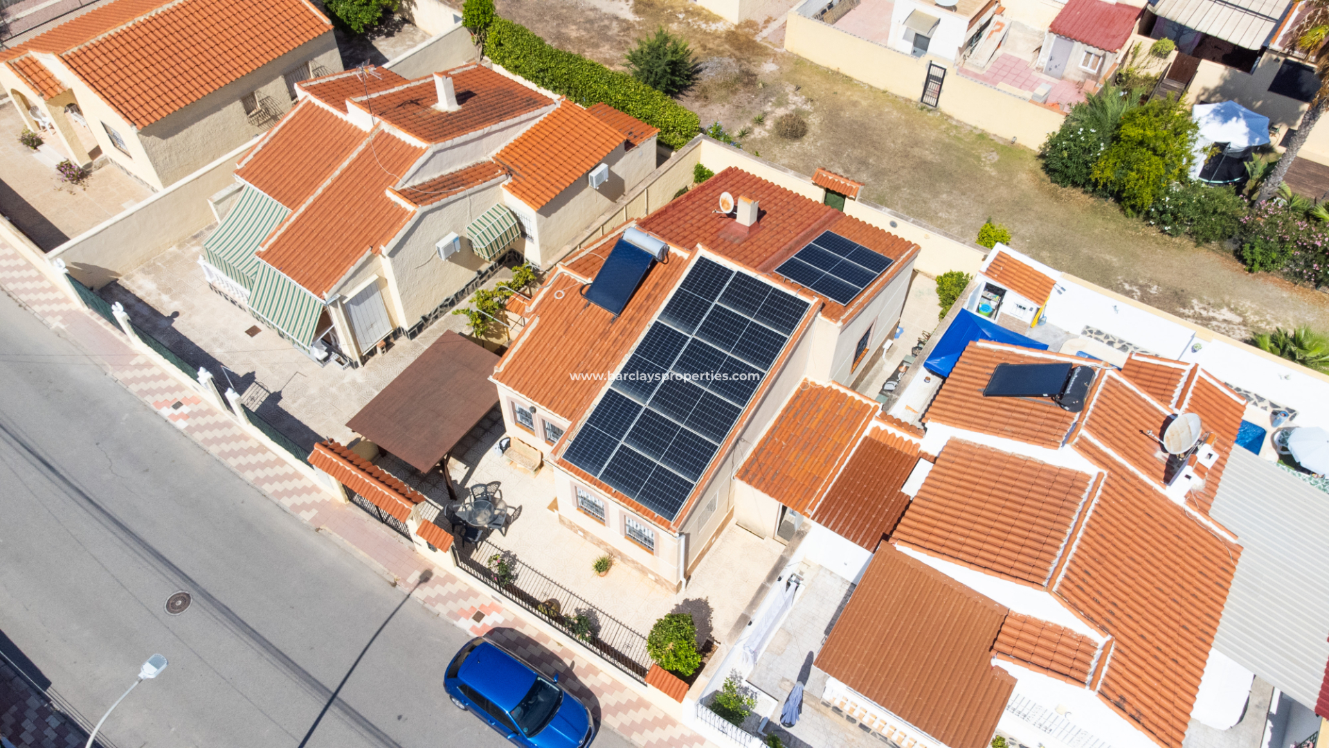 Belägen endast 10 minuters promenad till alla bekvämligheter, erbjuder denna vackert underhållna fristående villa, en modell "Lola", energieffektivitet och komfort i den eftertraktade urbanisationen La Marina. ➡️ Utrustad med 25 solpaneler som ger både el och varmvatten, är denna fastighet designad med hållbarhet i åtanke.