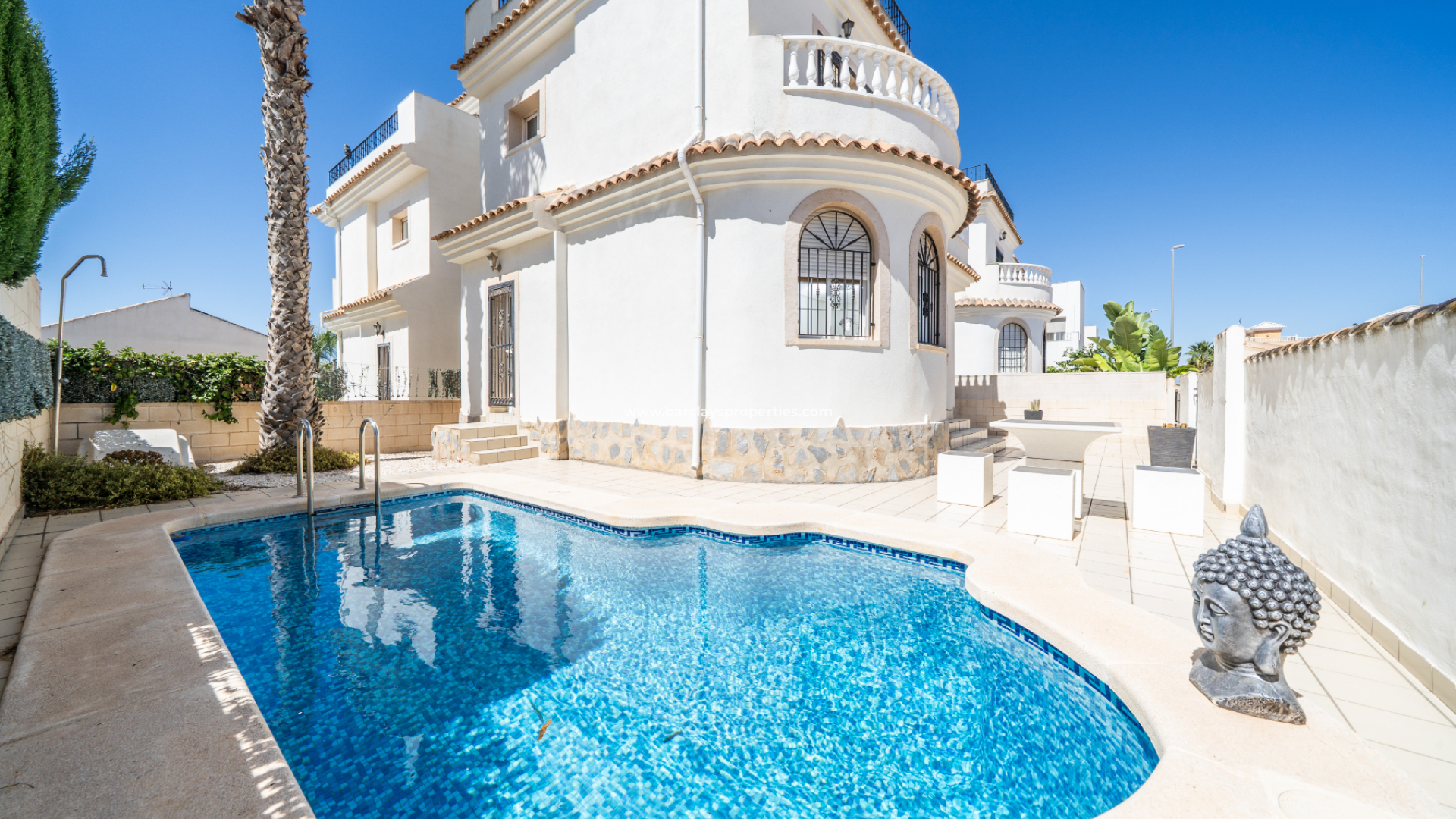 Denna fristående "Villas Del Palmeral"-modell ligger i ett privat område i Urb. El Oasis, ett lugnt område inom 10-15 minuters promenad till lokala bekvämligheter. ➡️ Villan har en egen inbjudande privat pool. De boende har också tillgång till en gemensam pool och tennisbana, vilket gör detta till ett utmärkt val för semester eller året runt-boende.