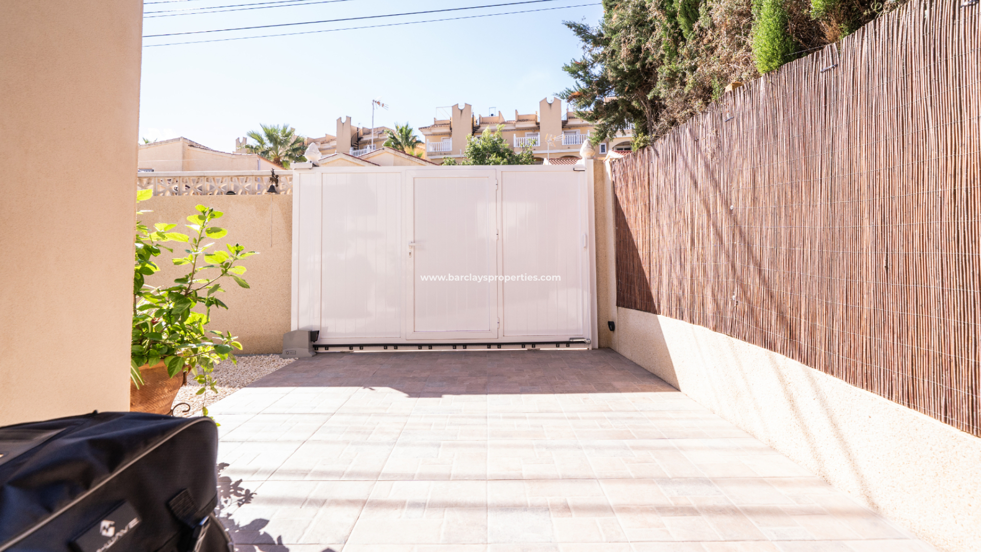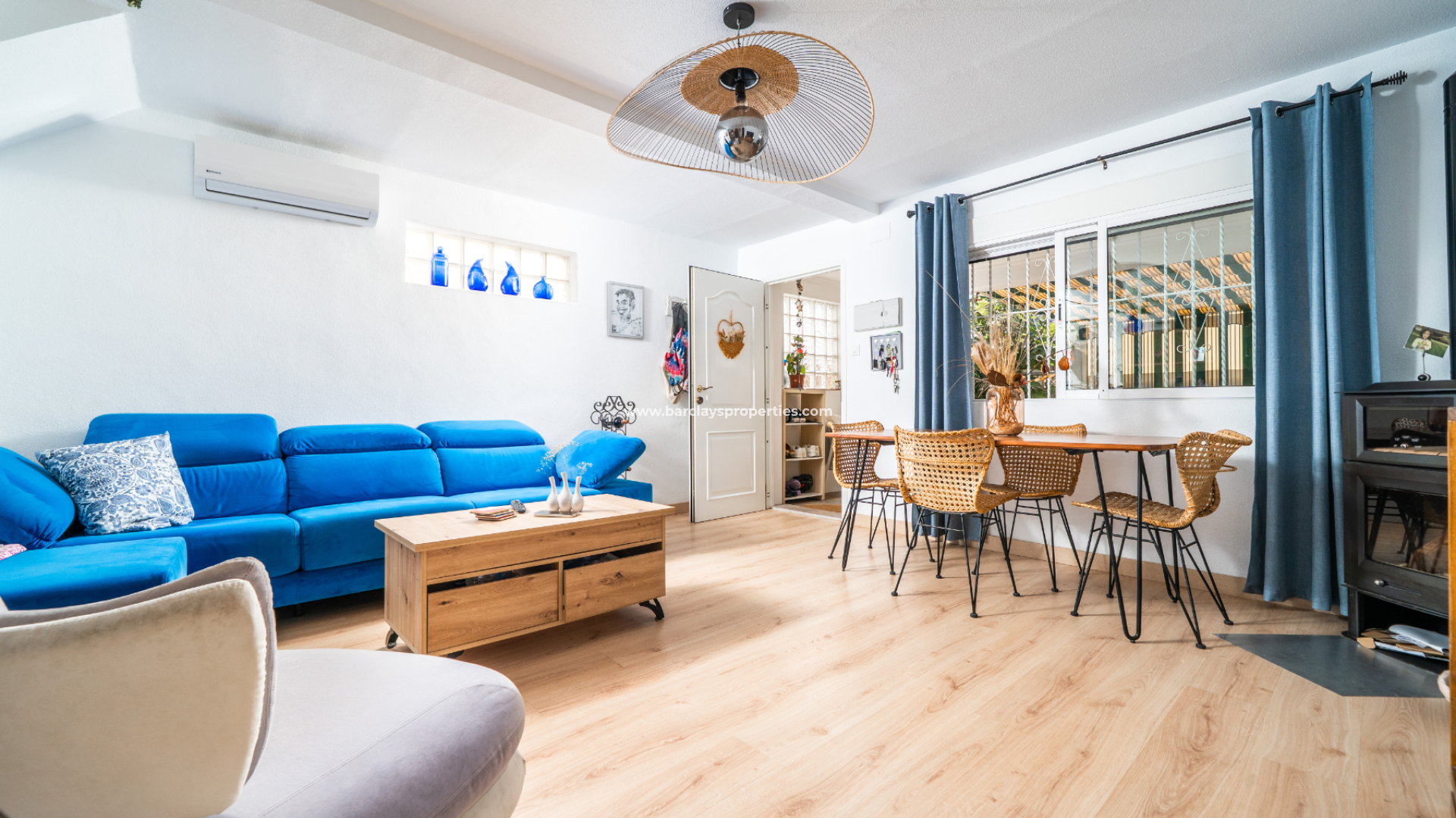 Vi är glada att presentera denna ➡️ helt renoverade och utbyggda fristående villa, idealiskt belägen i den eftertraktade urbanisationen La Marina. Denna charmiga "Lola"-modell ligger i ett lugnt område, bara en kort promenad från det livliga Plaza Sierra Castilla, där du hittar en stormarknad, en mängd butiker och ett utmärkt utbud av barer och restauranger. De gyllene sandstränderna "Playas de La Marina" ligger bara 5 minuters bilresa bort.