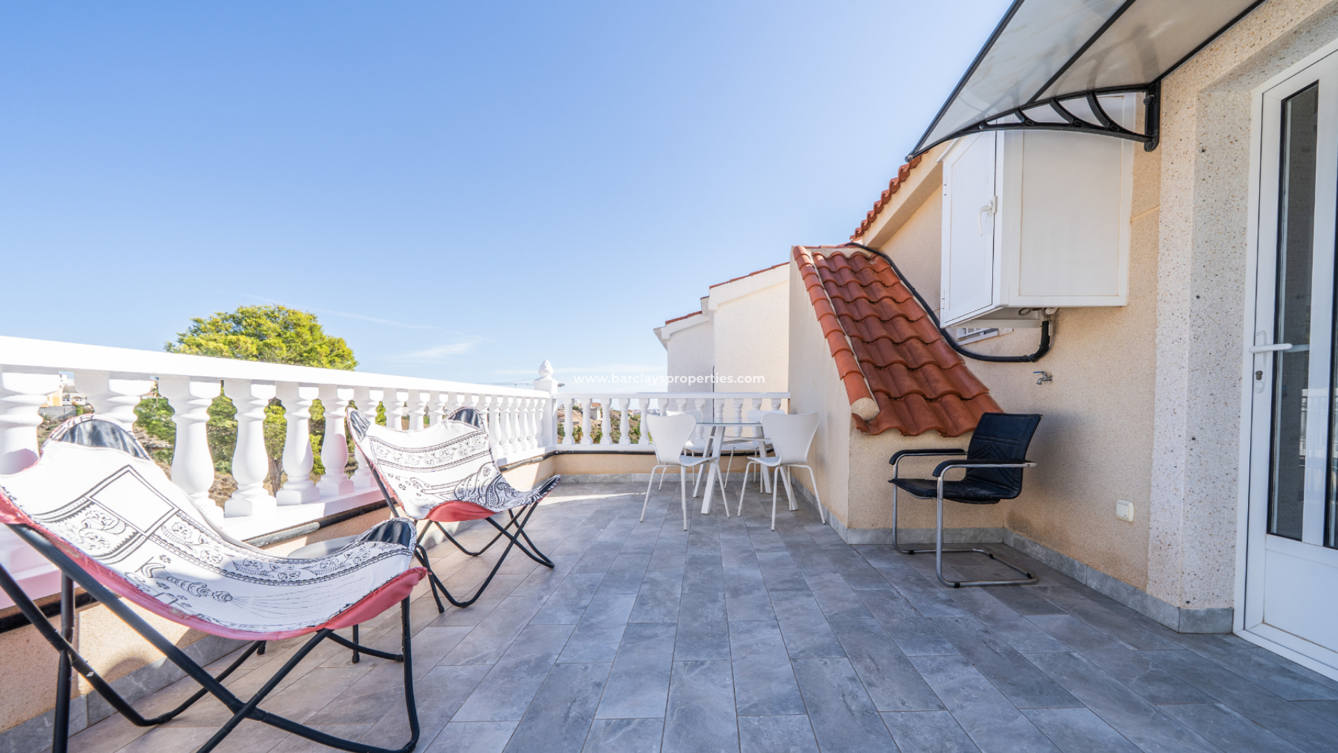 På övervåningen erbjuder master bedroom avskildhet och komfort, med ett elegant en-suite badrum med duschkabin och luftkonditionering för komfort året runt. Härifrån öppnar altandörrar till en stor solterrass som omsluter fastigheten och erbjuder ➡️ fantastisk utsikt över den omgivande landsbygden och den närliggande staden Guardamar del Segura.