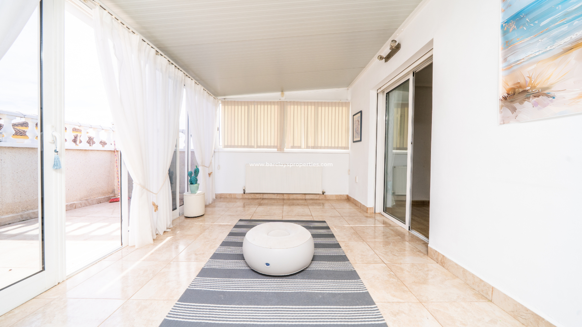 Denna fristående "Sierra Villas"-modell ligger i Urb La Marina, ➡️ belägen inom ett privat område och bara 8–10 minuter från "Consum Square", ett populärt kommersiellt centrum med barer, restauranger och två stormarknader. ➡️ Invånarna har också tillgång till en välskött gemensam pool i hjärtat av detta område. Denna fastighet är perfekt belägen endast 5 minuters bilresa från sandstranden "Playa de La Marina" och 25 minuters bilresa till Alicantes flygplats, perfekt för besökande gäster och familj.