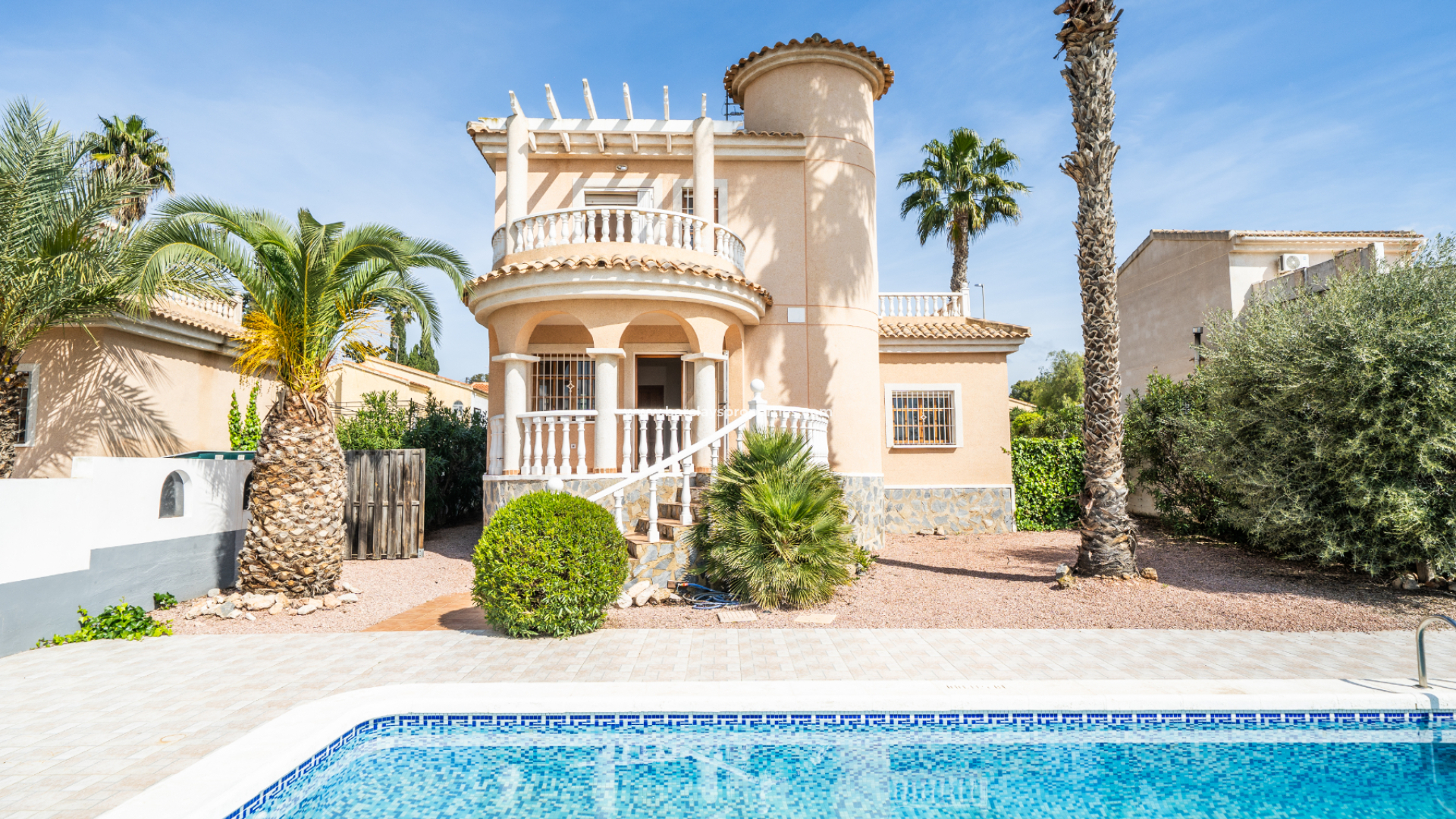 Denna eleganta fristående villa på Costa Blanca erbjuder en generös boyta på 127 m² fördelat på två våningar, ➡️ belägen på en vidsträckt tomt om 504 m². Hemmet är orienterat mot ➡️ väster och söder för att maximera det naturliga ljusinsläppet och har tre rymliga sovrum och två badrum, kompletterat med ett stort fristående kök med gott om skåpförvaring och en praktisk tvättstuga.