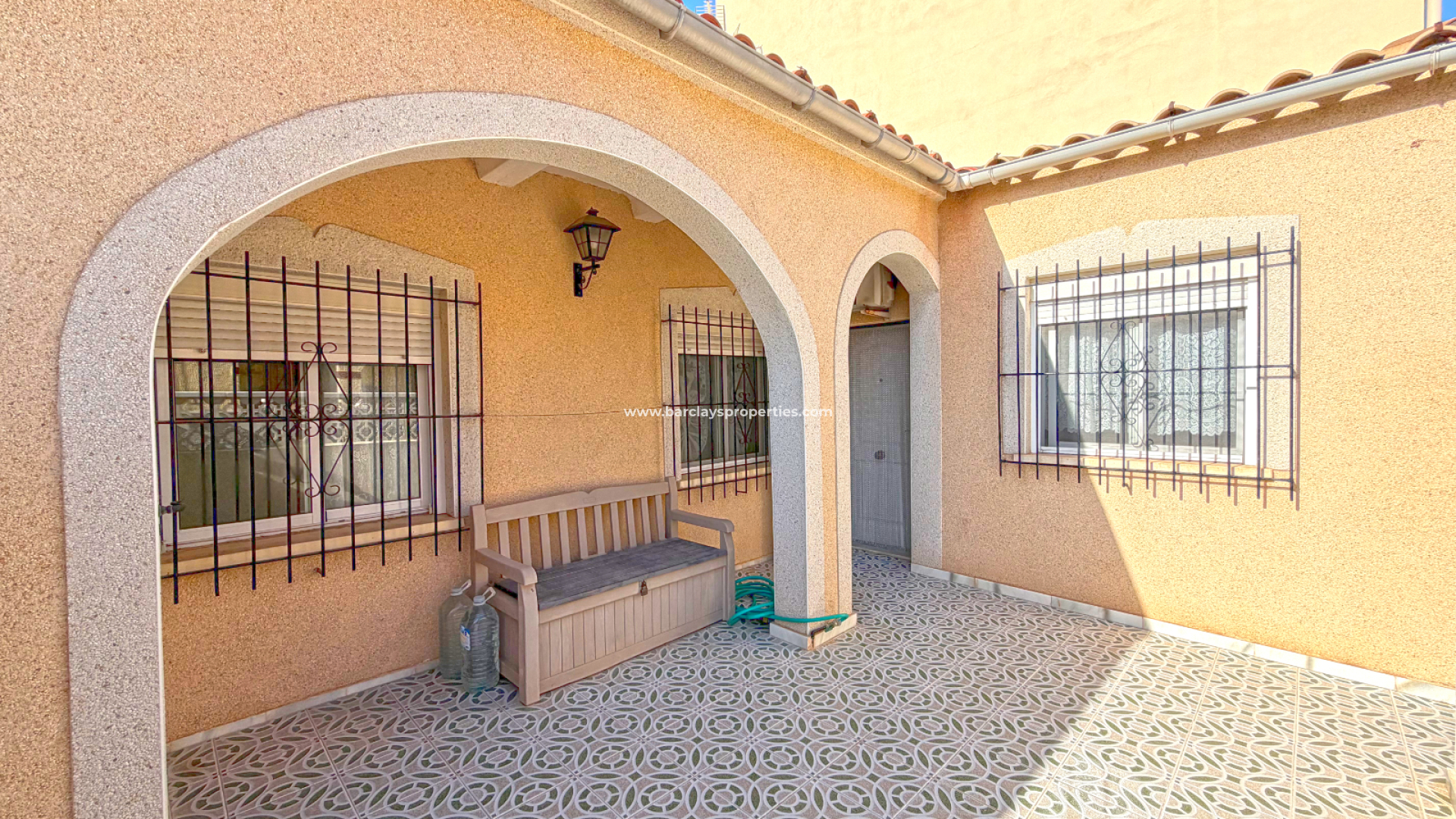 Exteriören har en modern gote gran-väggfinish, vilket ger en ren, lättskött yta och ett attraktivt helhetsintryck. En stor solterrass erbjuder gott om plats för att koppla av, äta middag eller njuta av det varma klimatet. Denna ”Fina” erbjuder ett rymligt, utbyggt vardagsrum, utrustat med luftkonditionering för komfort året runt.