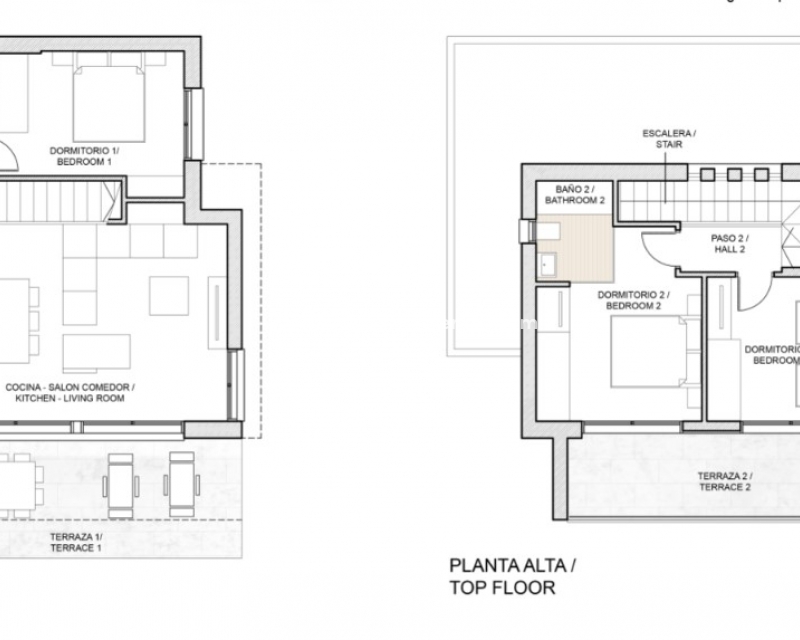 Nybyggda villor med tre sovrum och tre badrum byggda på två våningar nära bekvämligheter, stranden och Vistabella Golf Course nära Torrevieja, på Costa Blanca.