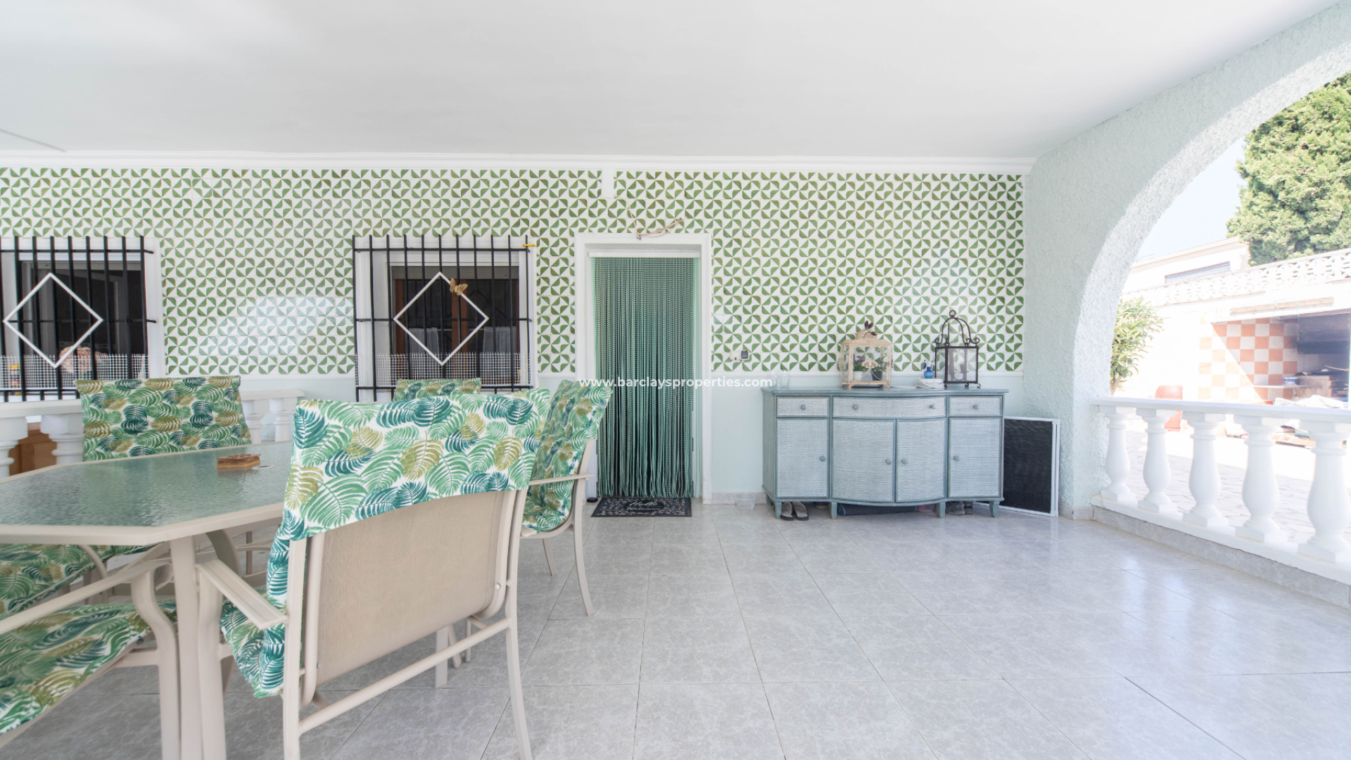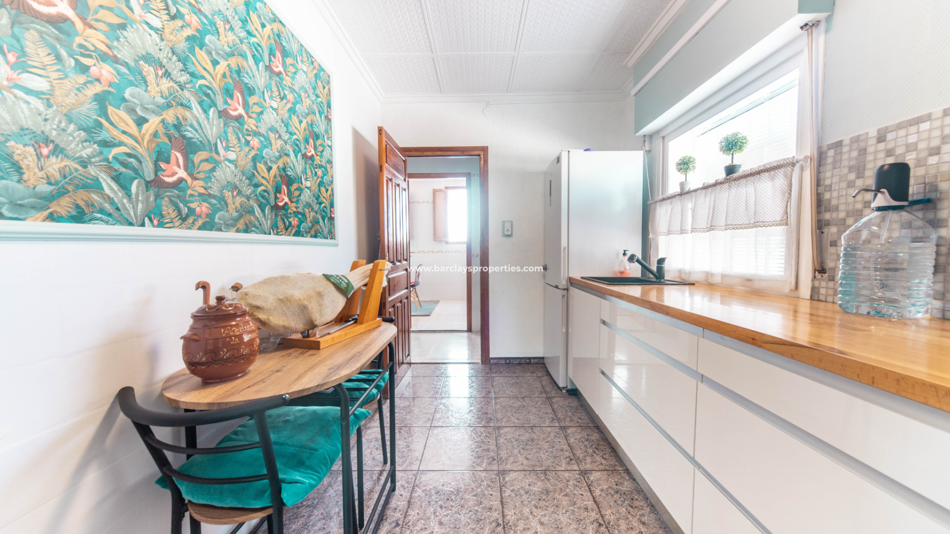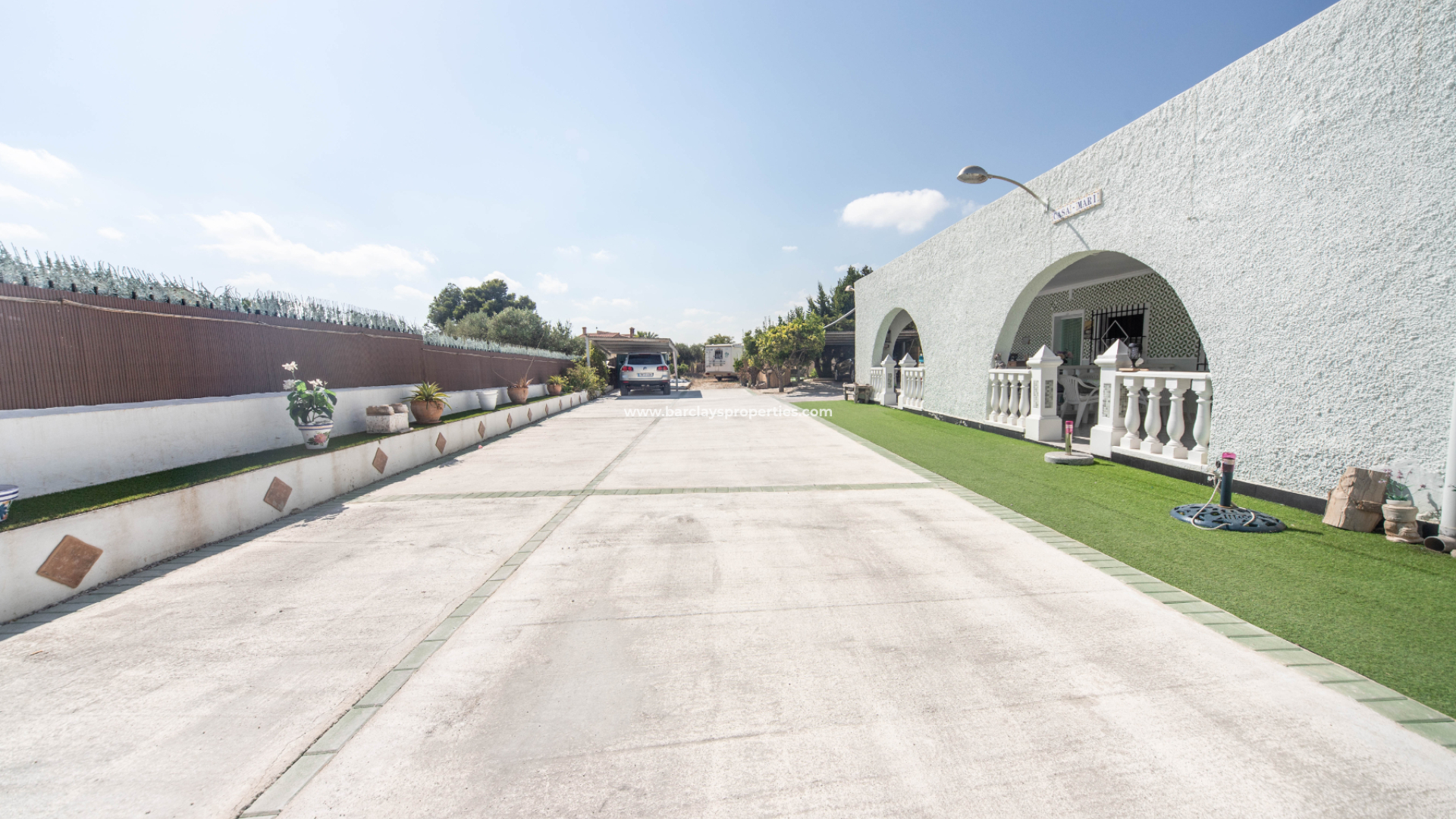 Denna unika tomt rymmer tre rymliga fastigheter som kan användas som gästboende eller hyresboende. Den stora tomten erbjuder plats för husbilar eller husvagnar samt olika fordon, den långa uppfarten leder till tre bilportar som ger möjlighet till täckt parkering för några fordon. Dess läge är perfekt placerat i utkanten av Urbanisation El Oasis bara 2 minuters promenad till alla bekvämligheter och ett fantastiskt urval av barer, kaféer och restauranger för att passa alla smaker. Dessutom ligger de lokala sandstränderna i La Marina Village bara 5 minuter bort med bil och Alicantes flygplats ligger bara 25 minuter längs kustvägen.