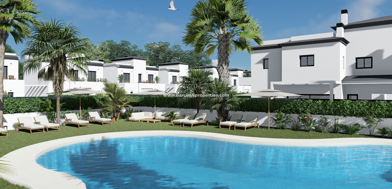 Villorna har utformats på ett smart sätt för att säkerställa maximal energieffektivitet, samt ge gott om naturligt ljus, generösa vardagsrum tillsammans med utvändiga trädgårdar, samt en stor gemensam pool och lekplats för barn.