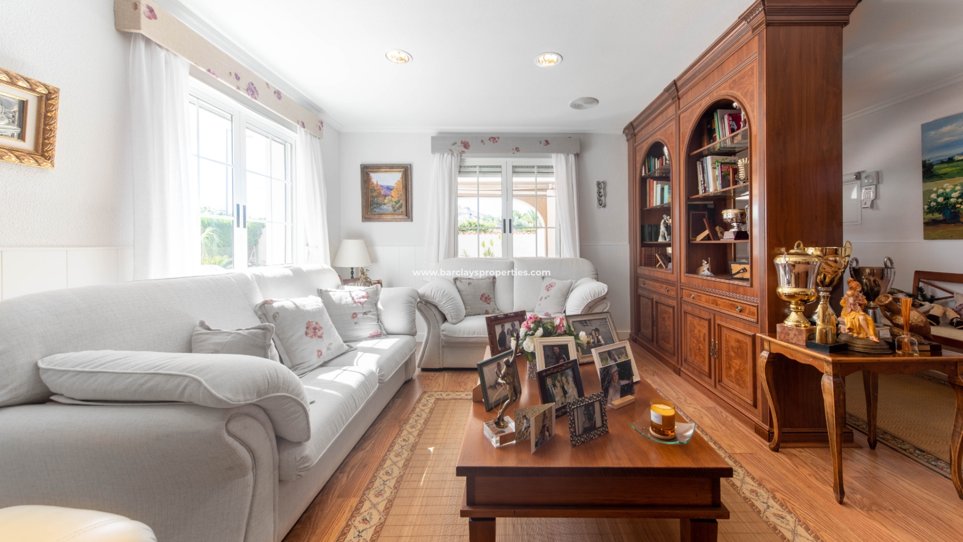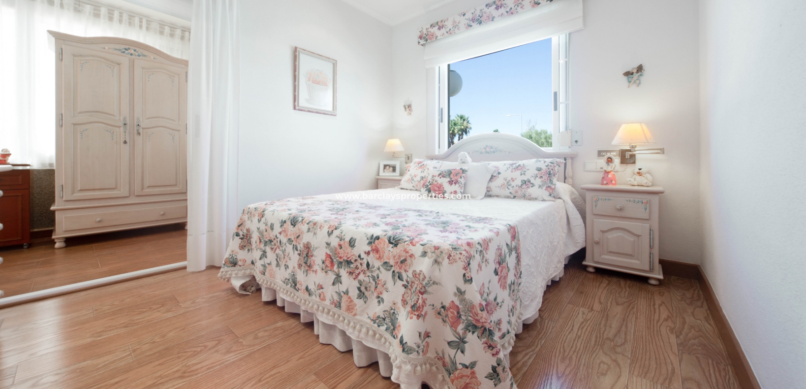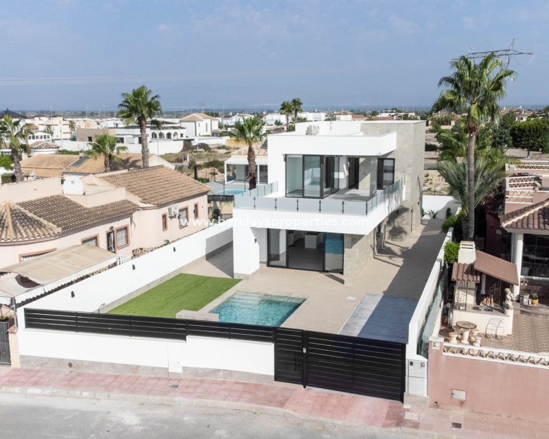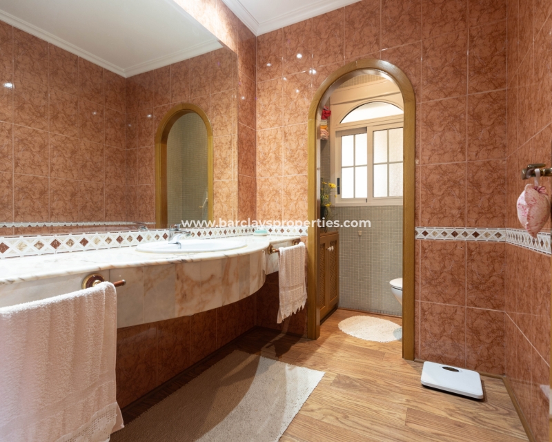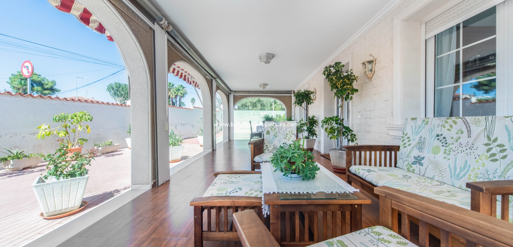 På en tomt på 979 m2 ligger denna stora familjevilla på 213 m2 med privat pool i Urbanisation El Oasis i San Fulgencio. Denna underbara villa ligger bara 5 minuters promenad till den angränsande urbanisationen La Marina med det centrala handelsområdet "Monte Victoria" där man hittar många affärer, en bank, veterinärer, optiker, fotvårdare, läkarmottagning och en rad barer och restauranger för alla smaker. Landsbygden ligger i närheten och är känd som "Sierra Molar", ett fantastiskt område för promenader och cykling.