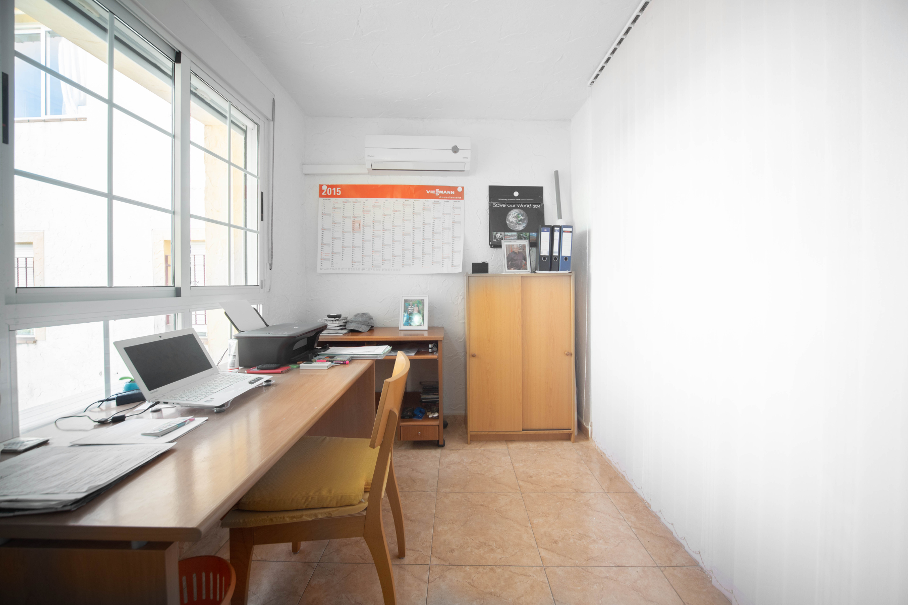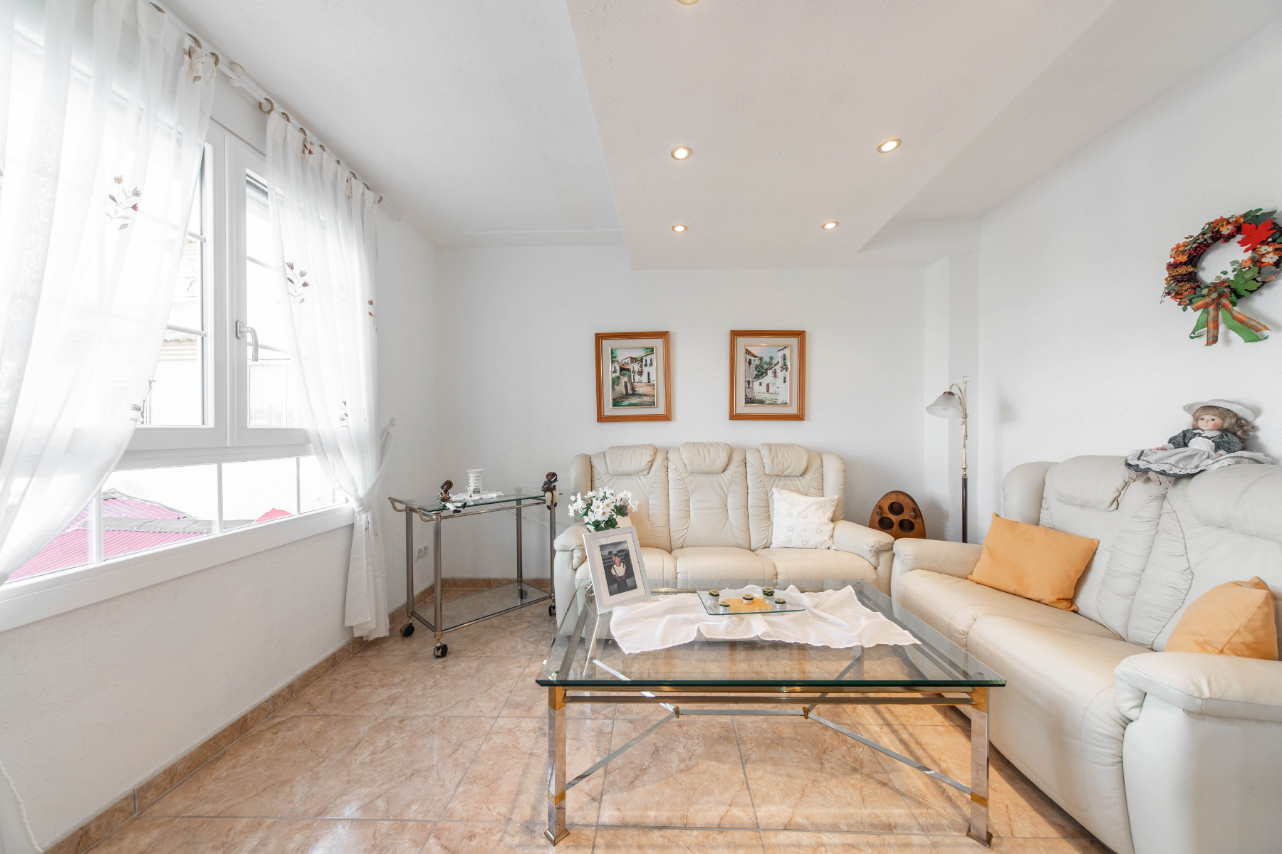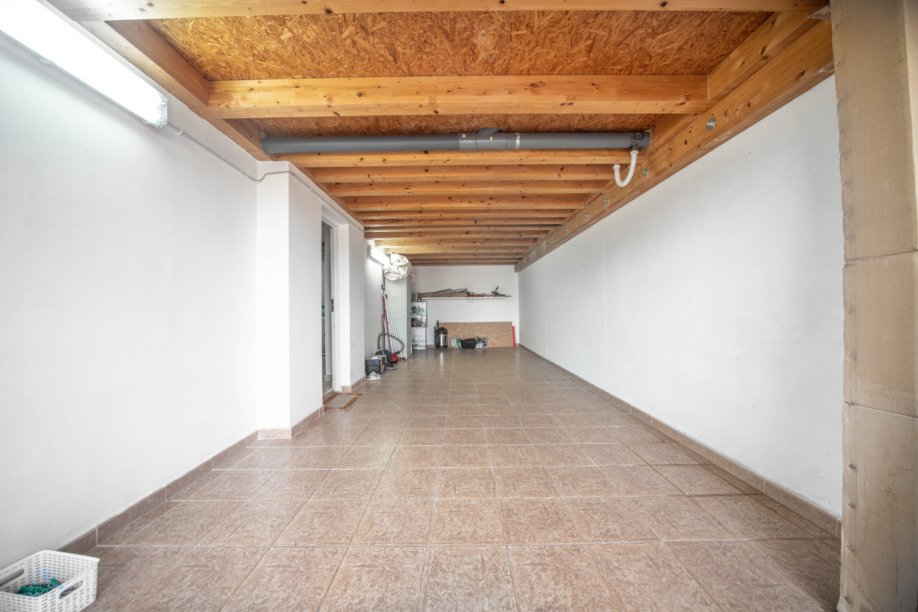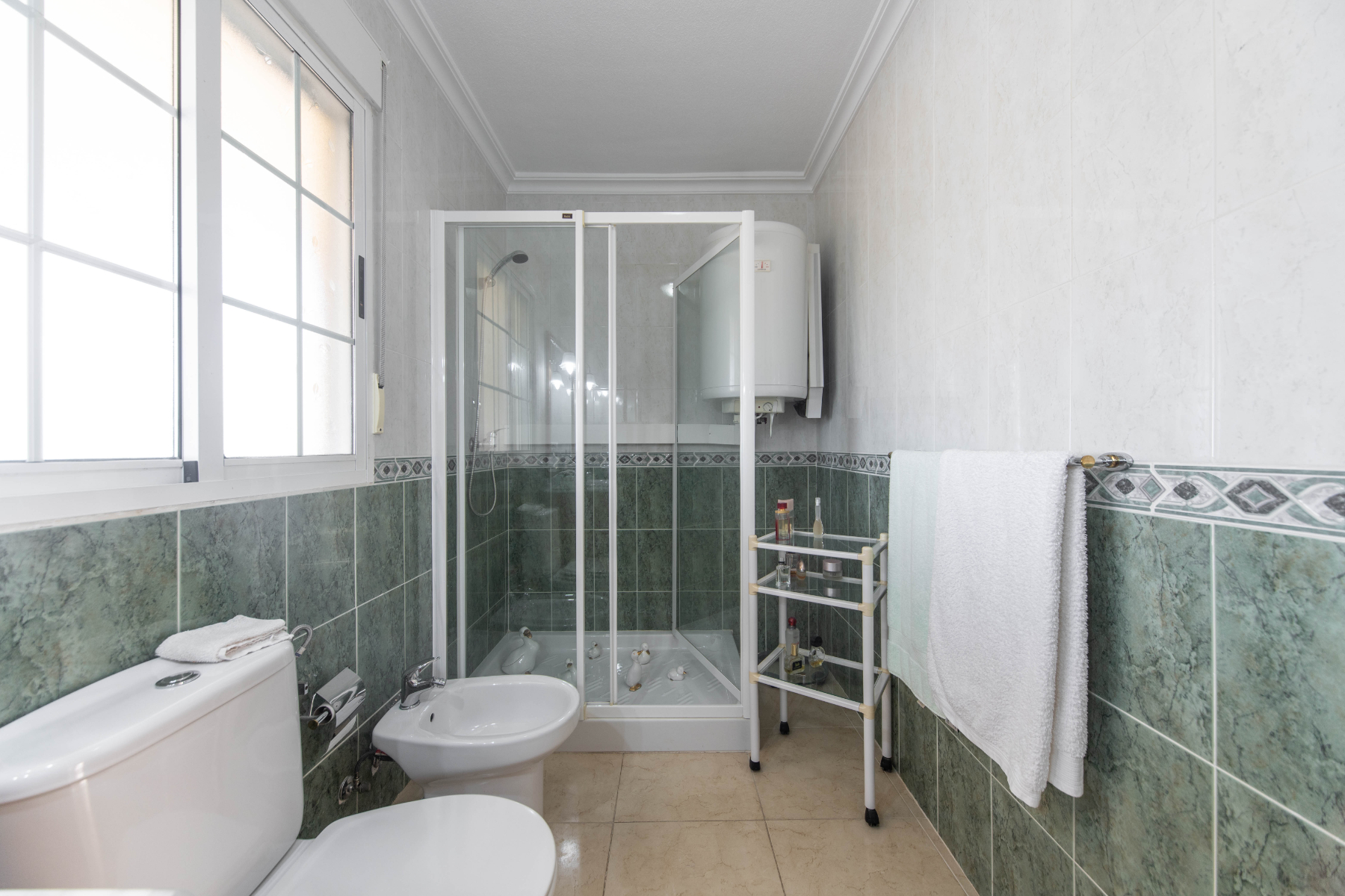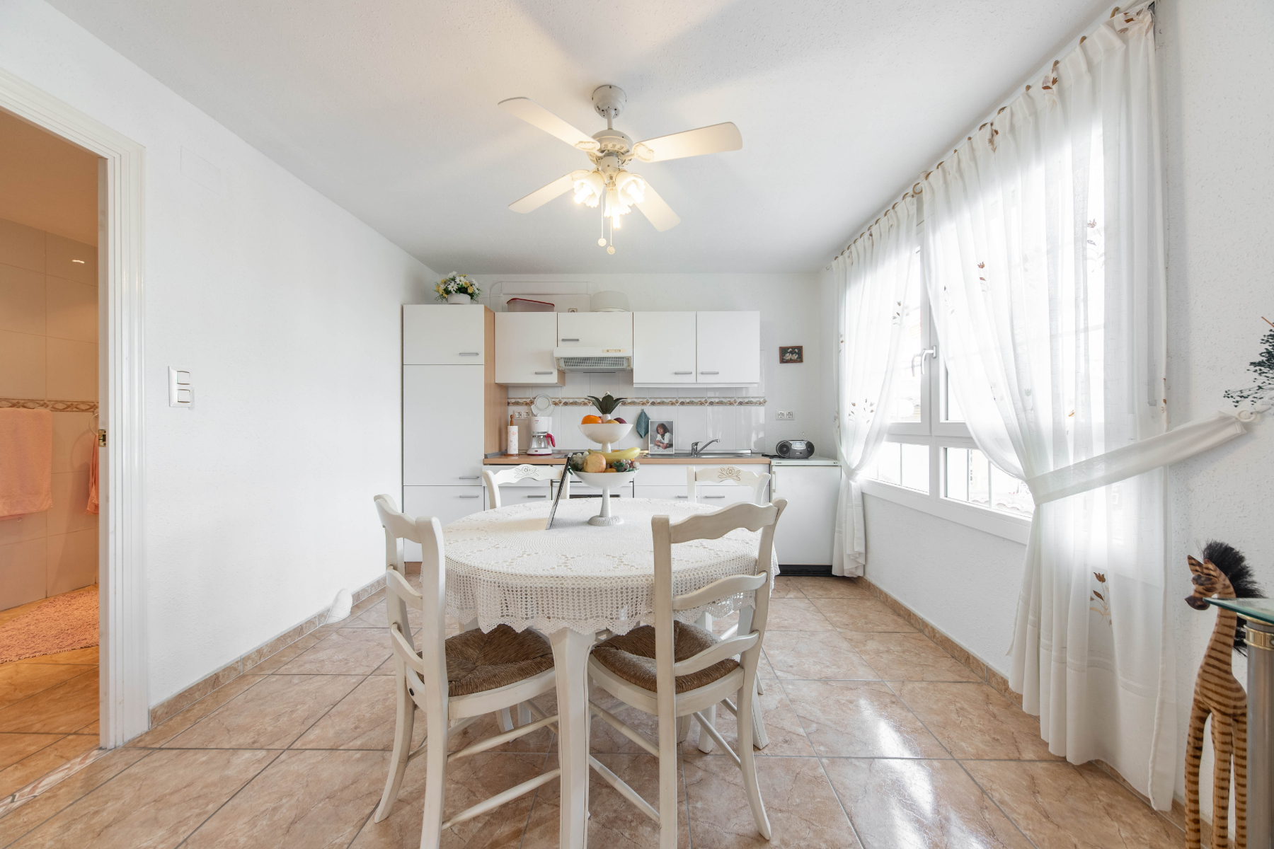 Här presenteras denna villa till salu i La Marina, som ligger i ett lugnt område i La Marina Urbanisation men ändå bara en kort promenad från de närmaste bekvämligheterna. På fastighetens översta våning hittar vi huvudentrén, men inte innan vi passerar genom den prydligt stenlagda trädgården med en egen 6,5 gånger 3,5 meter stor täckt uppvärmd pool! Solmarkiserna precis ovanför verandans funktionella pelare ger extra skugga till denna lummiga exteriör. Det finns en täckt sittplats vid poolen med vacker utsikt över landsbygden och en annan sittplats på framsidan av fastigheten, så att du kan följa det varma medelhavssolskenet hela dagen.